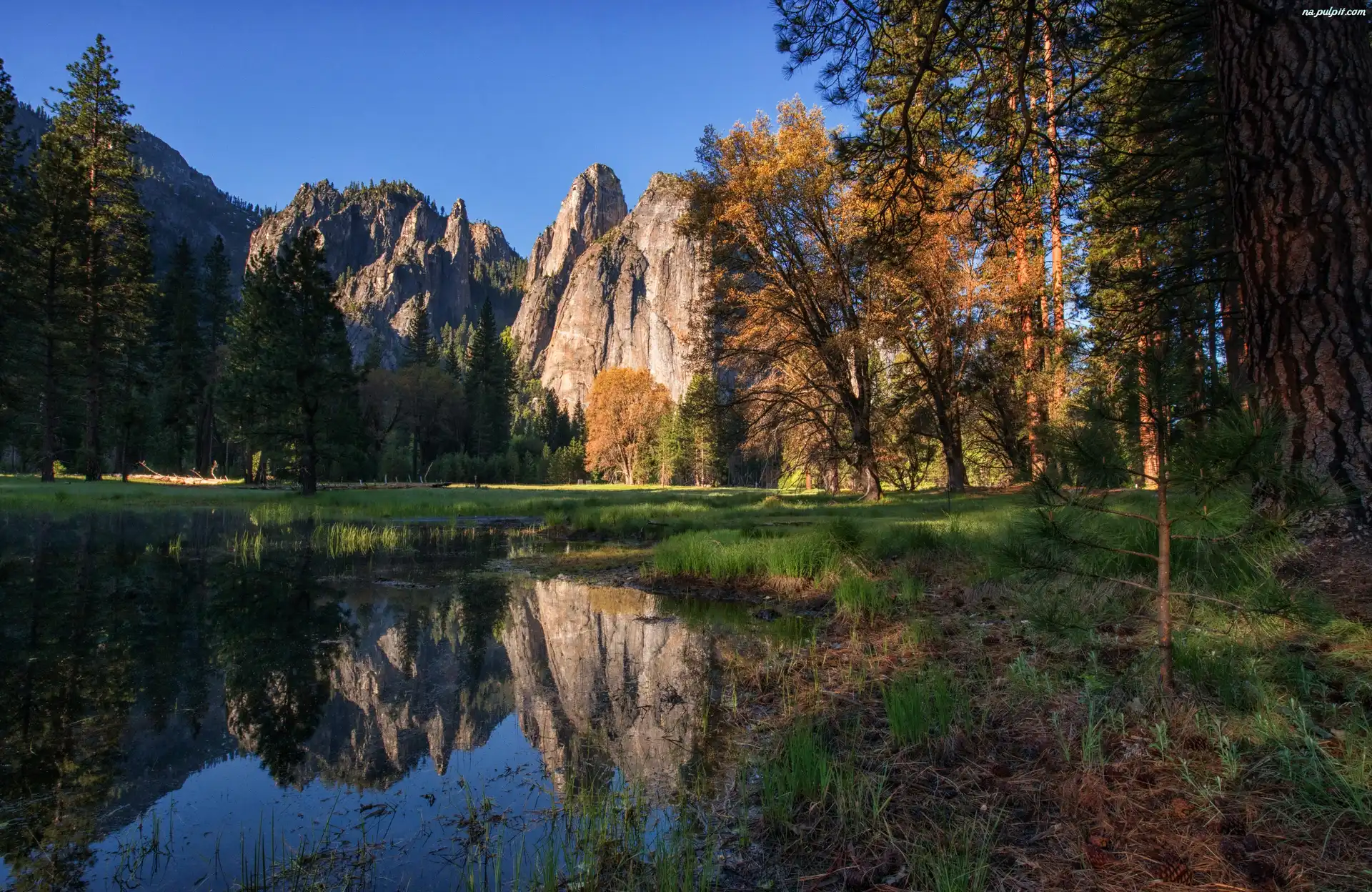 Odbicie, Jezioro, Góry, Drzewa Na Pulpit