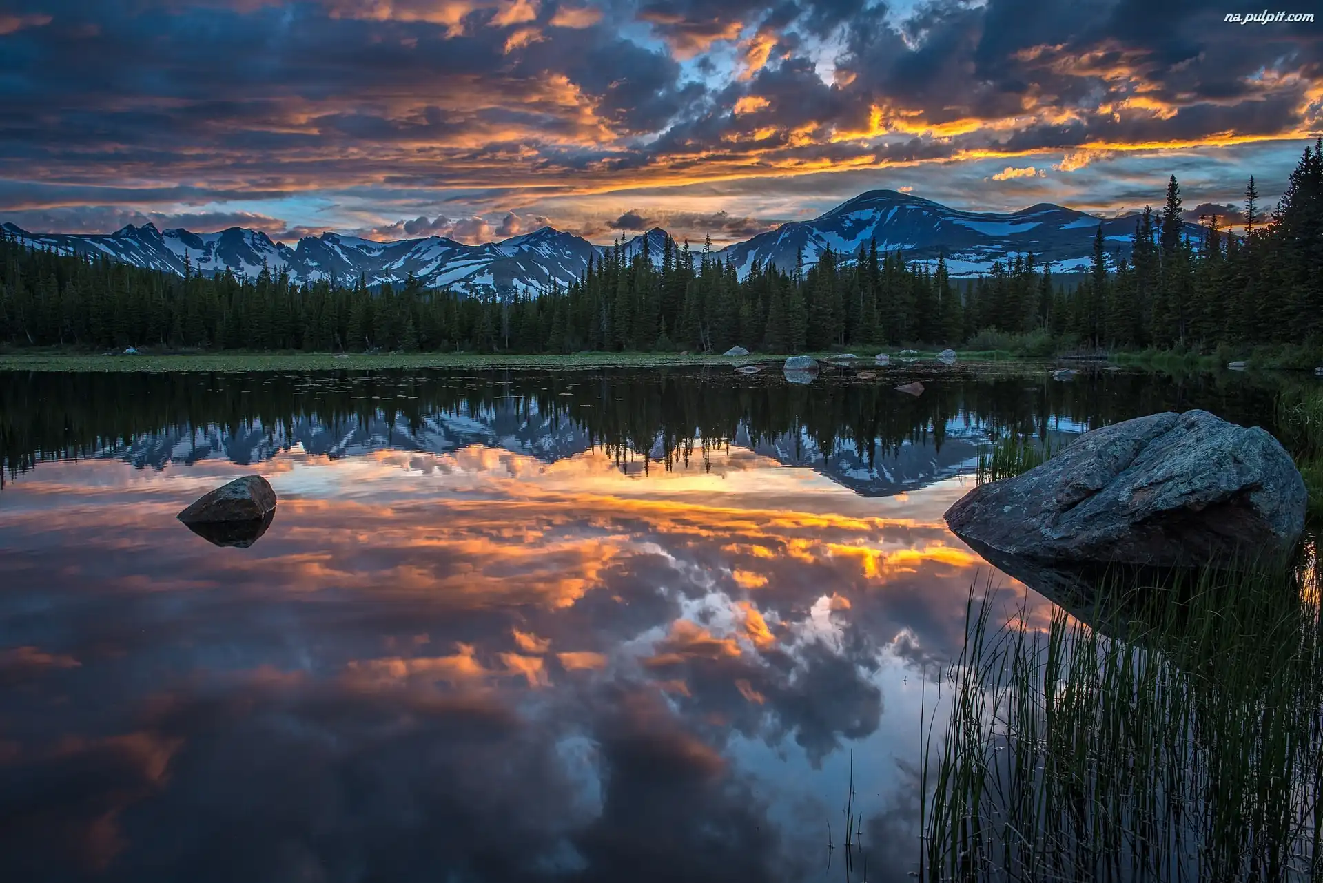 Odbicie, Jezioro, Lasy, Góry, Chmury