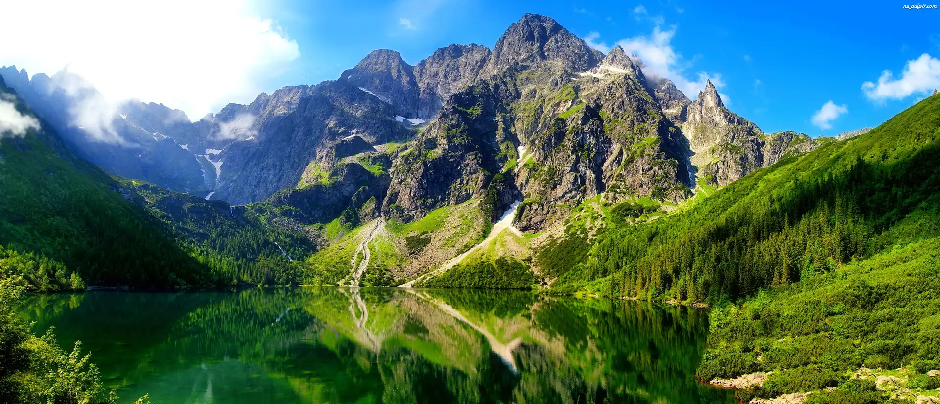 Kamienie, Góry, Jezioro Ławka, Jesień, Jezioro Polska, Morskie, Oko Jezioro, Góry, Chmurki Plaża, Fale, Góry, Morze Góra Góra Góra, Jeziora Góra Góry, Krzewy palmy, Chmura, Góry, Niebo Góry, śnieg domki, Góry, dwa drzewa skały, Niebo