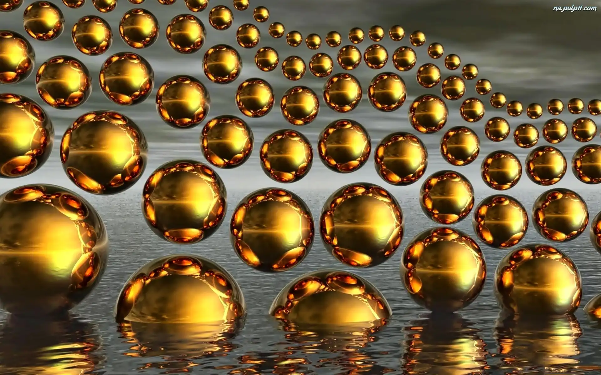 Odbicie, Kulki, Złote, Grafika, Woda Na Pulpit
