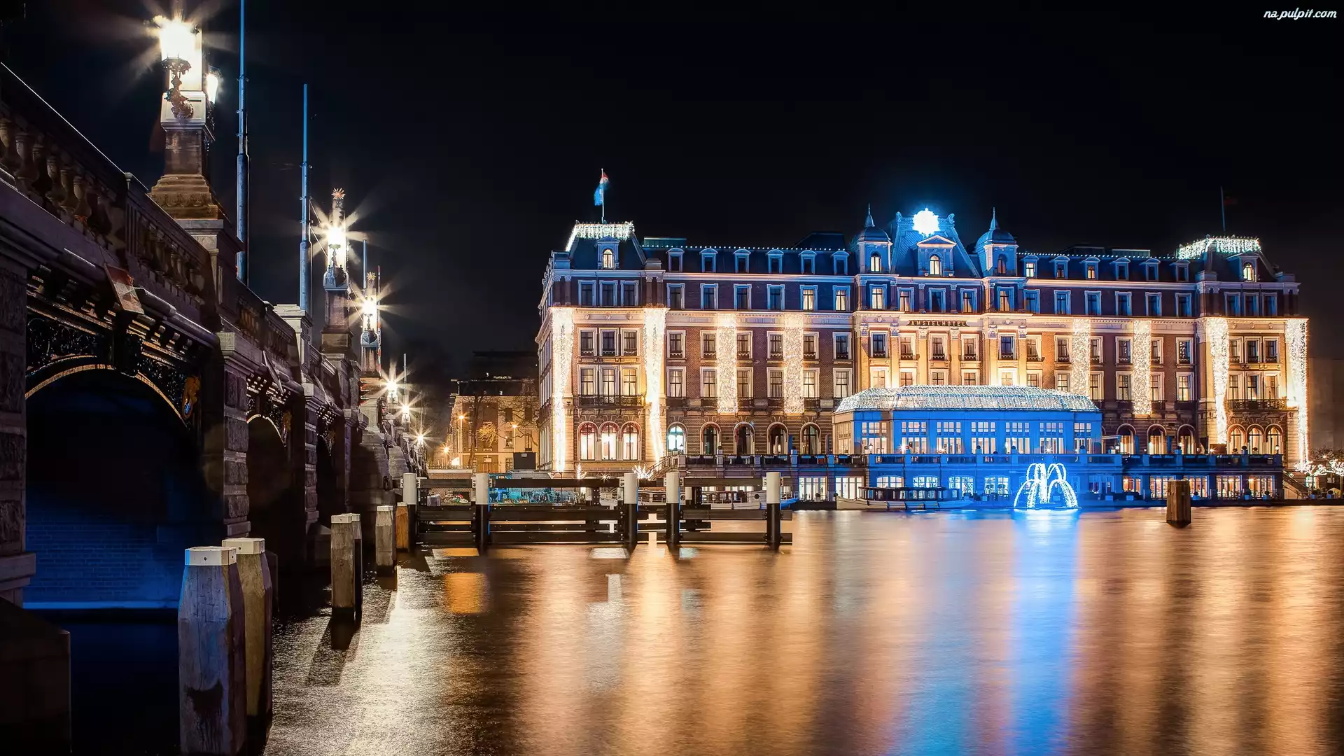 Odbicie, Noc, Amsterdam, Hotel, Woda Na Pulpit