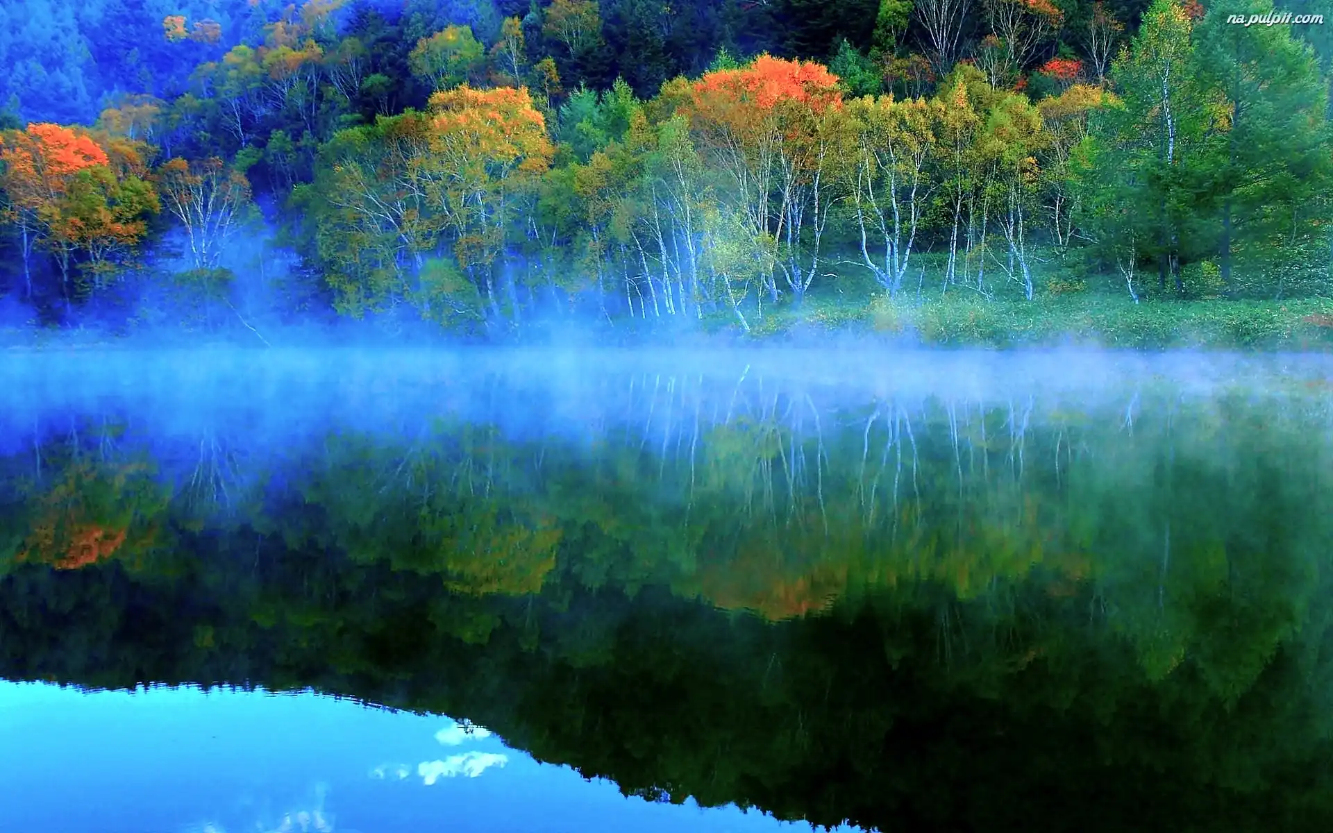 Odbicie, Rzeka, Las, Jesień, Mgła Na Pulpit