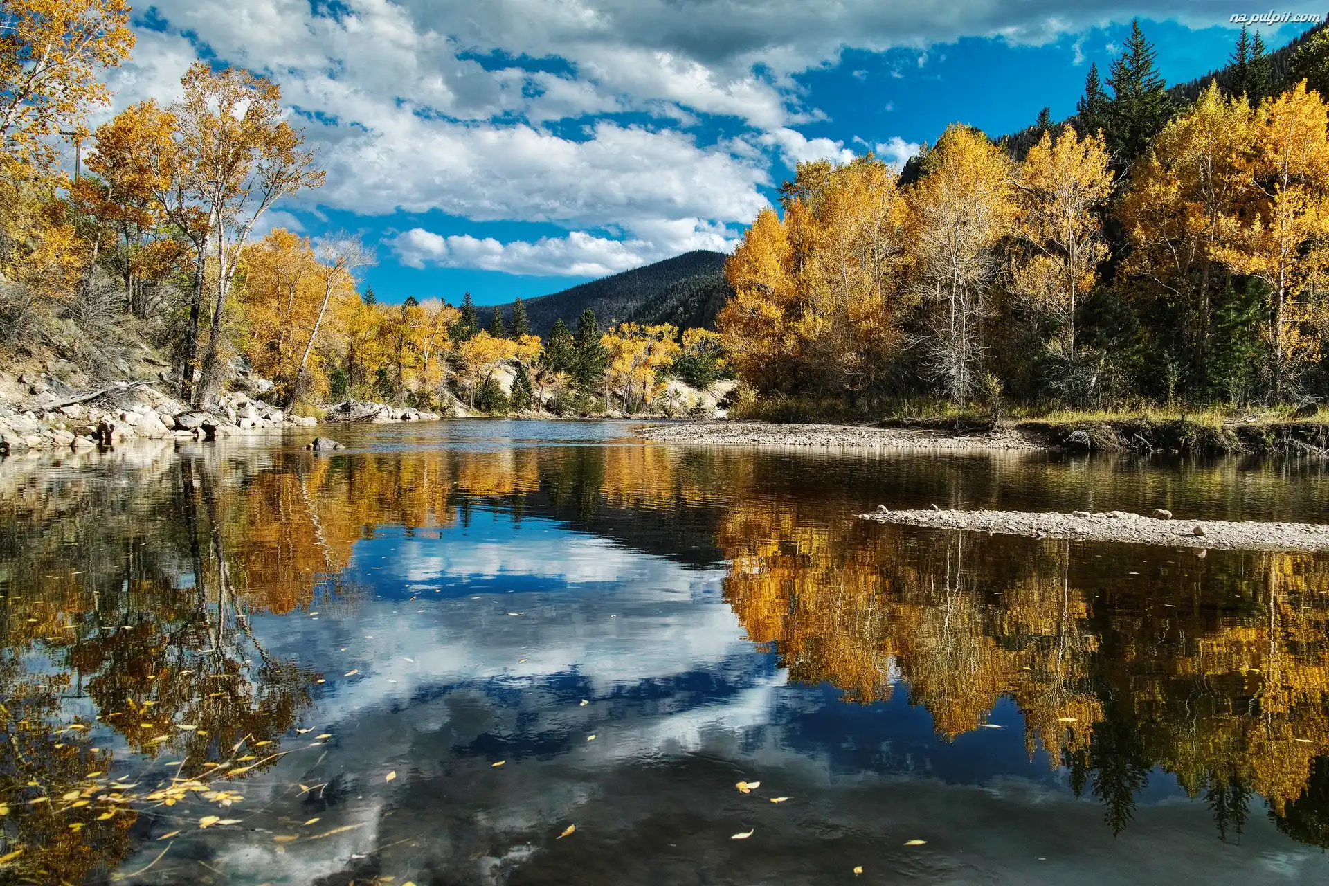 Odbicie, Rzeka, Jesień, Las Na Pulpit