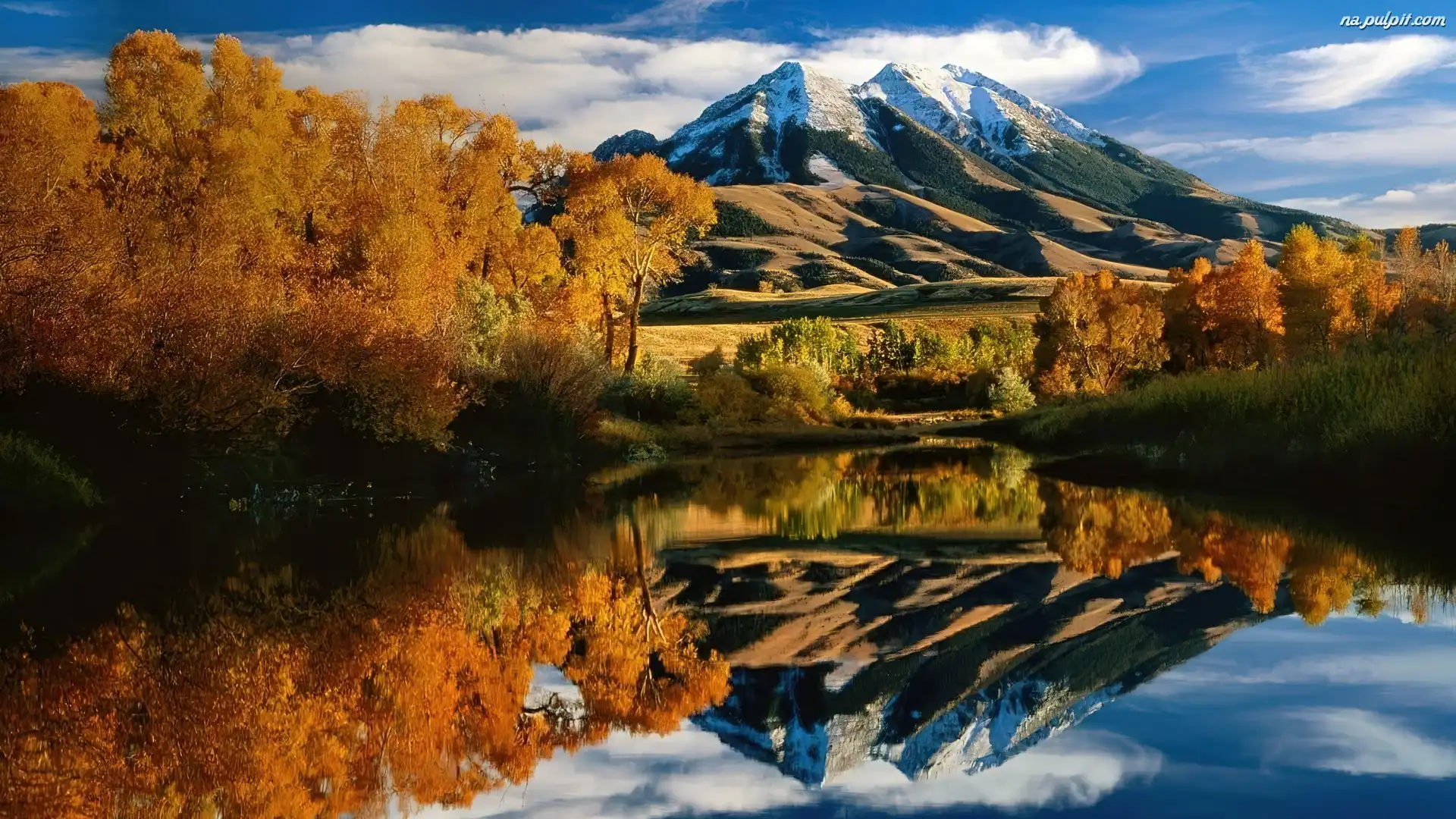 Odbicie, Góra, Jezioro, Drzewa Na Pulpit