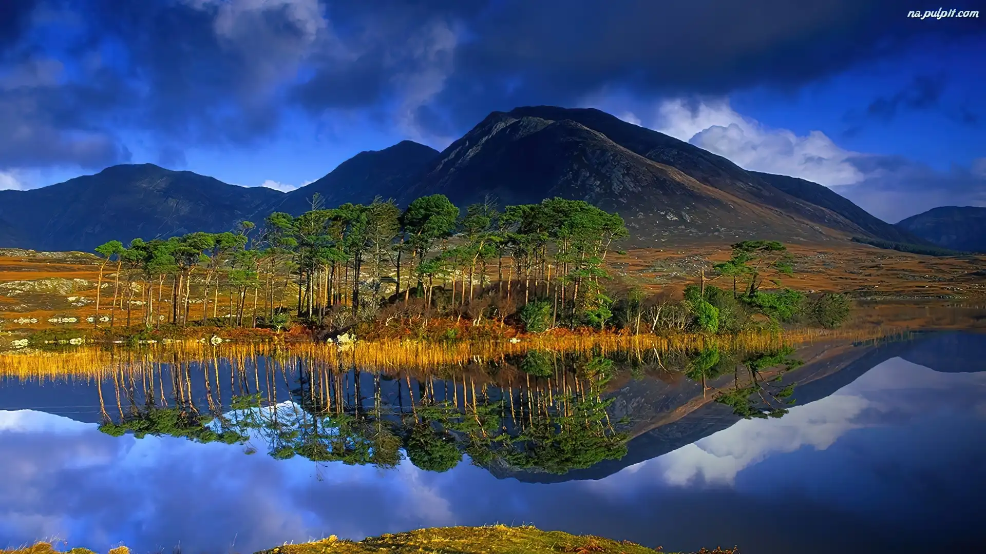 Odbicie, Góra, Jezioro, Drzewa Na Pulpit