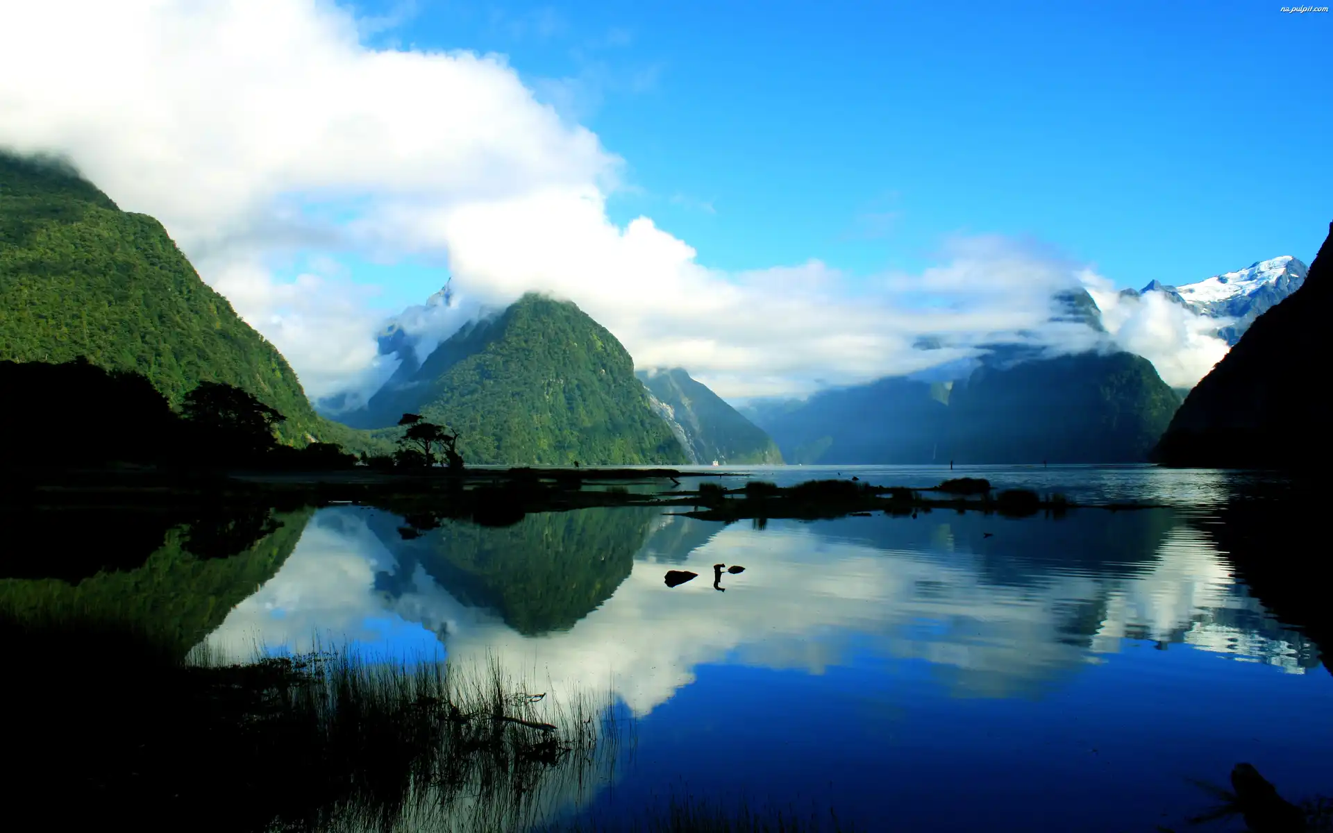 Odbicie, Góry, Jezioro, Chmury Na Pulpit
