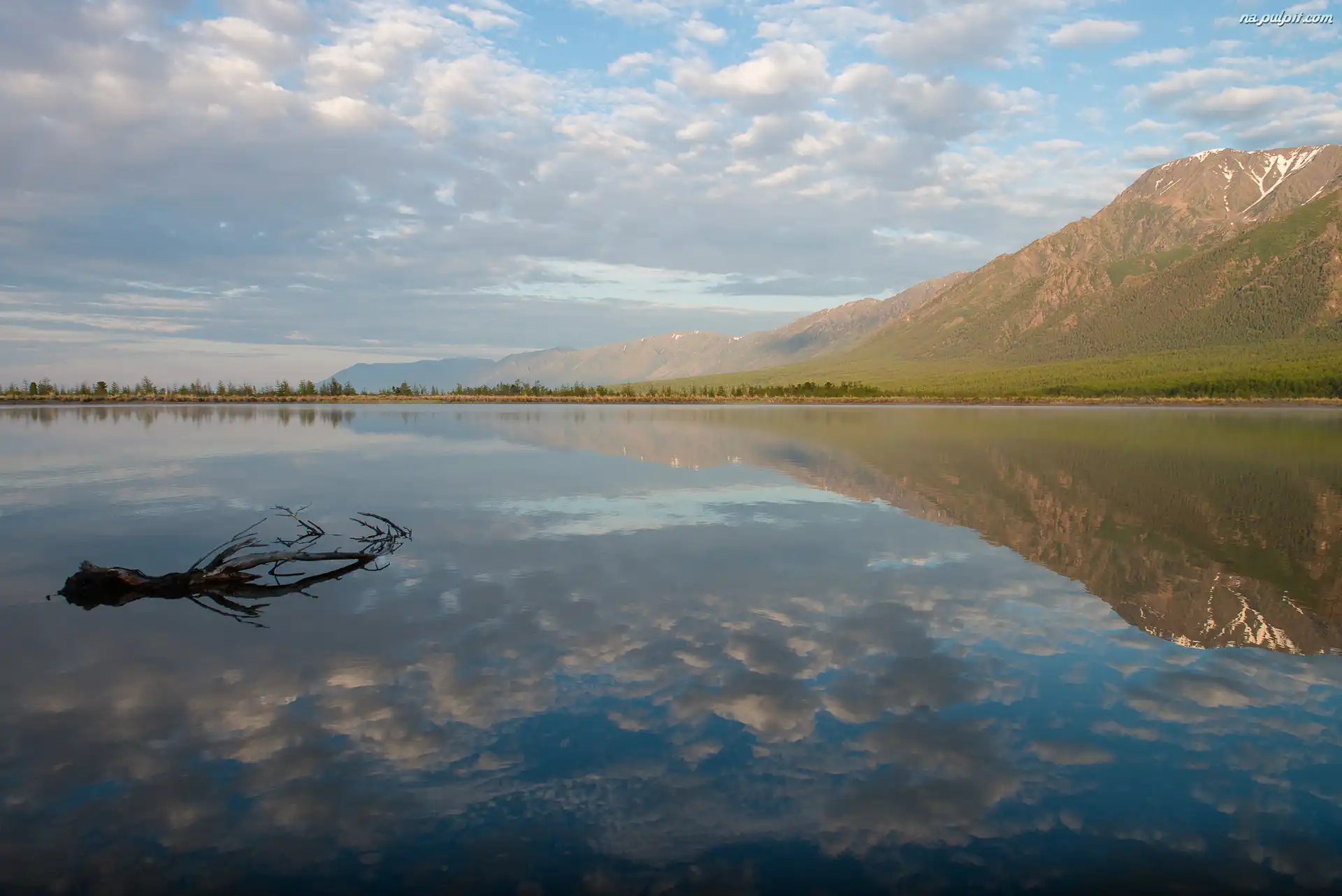 Odbicie, Konar, Góry, Jezioro, Drzewa Na Pulpit