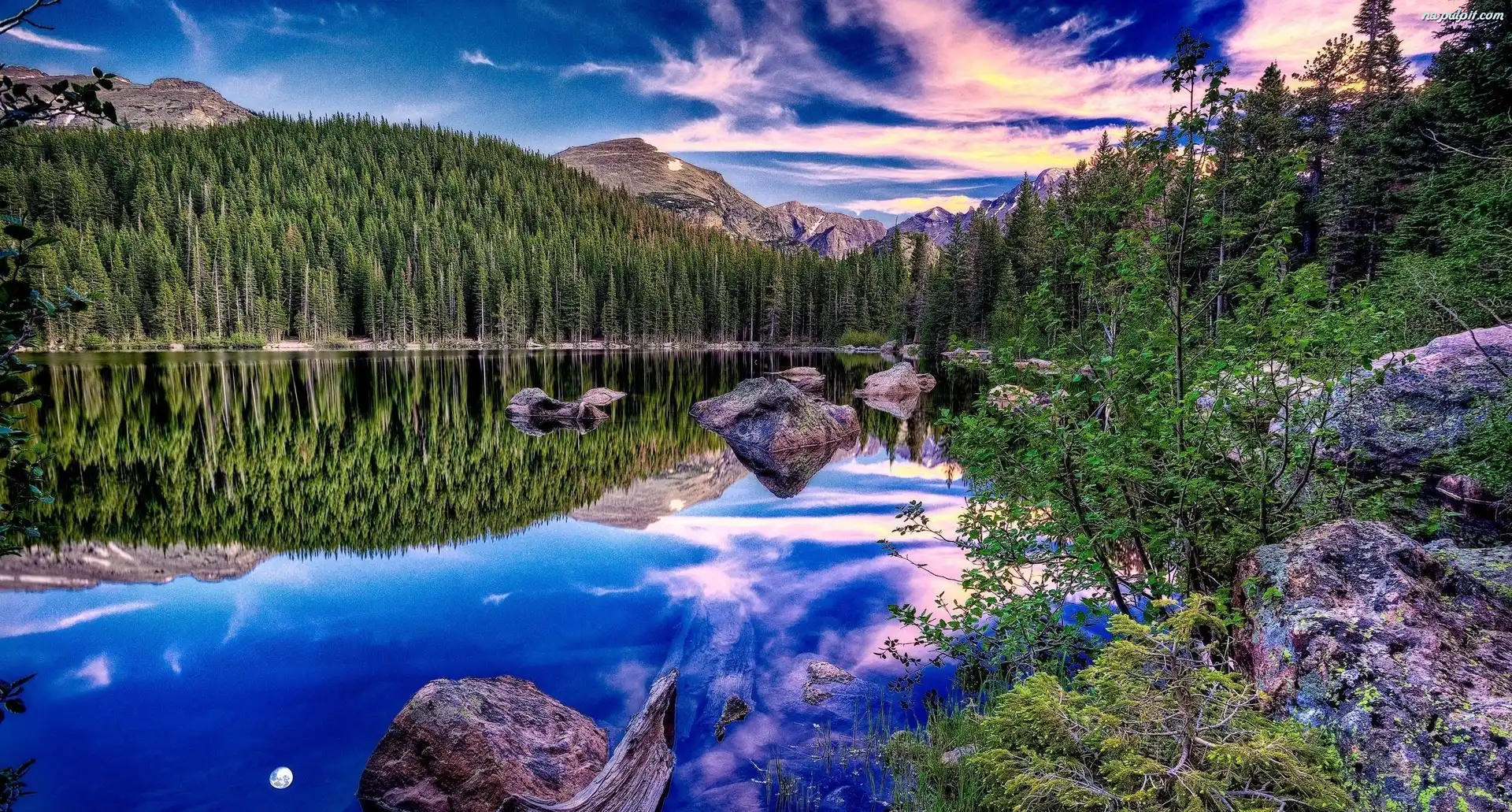 Odbicie, Góry, Jezioro, Las Na Pulpit