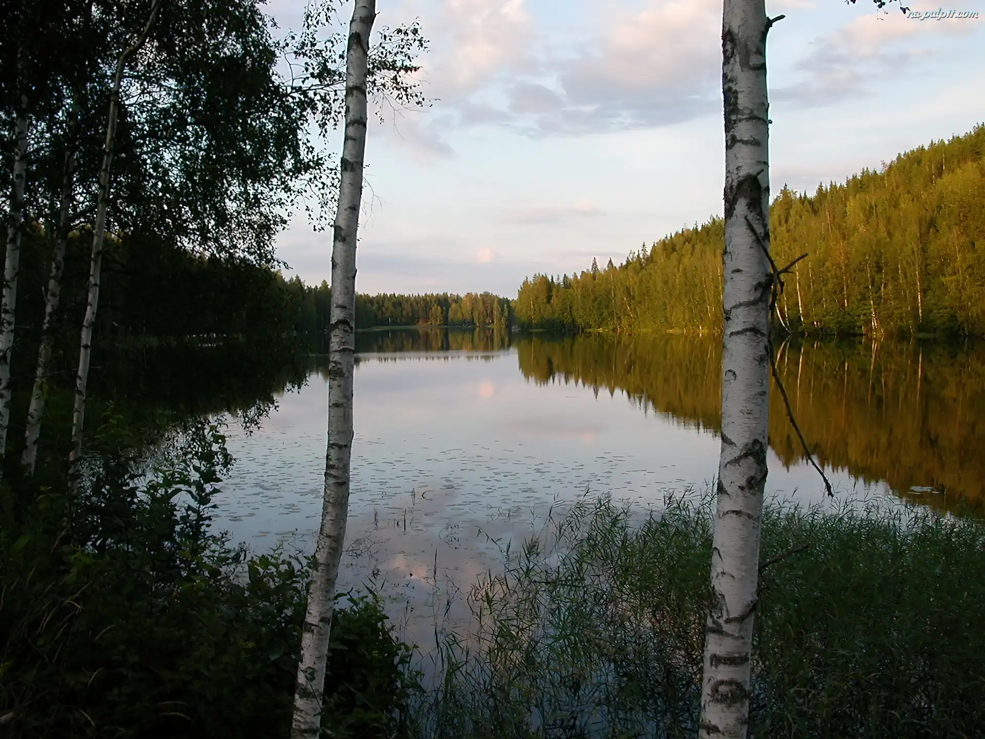 Odbicie, Las, Woda, Drzewa, Jezioro, Brzozy Na Pulpit