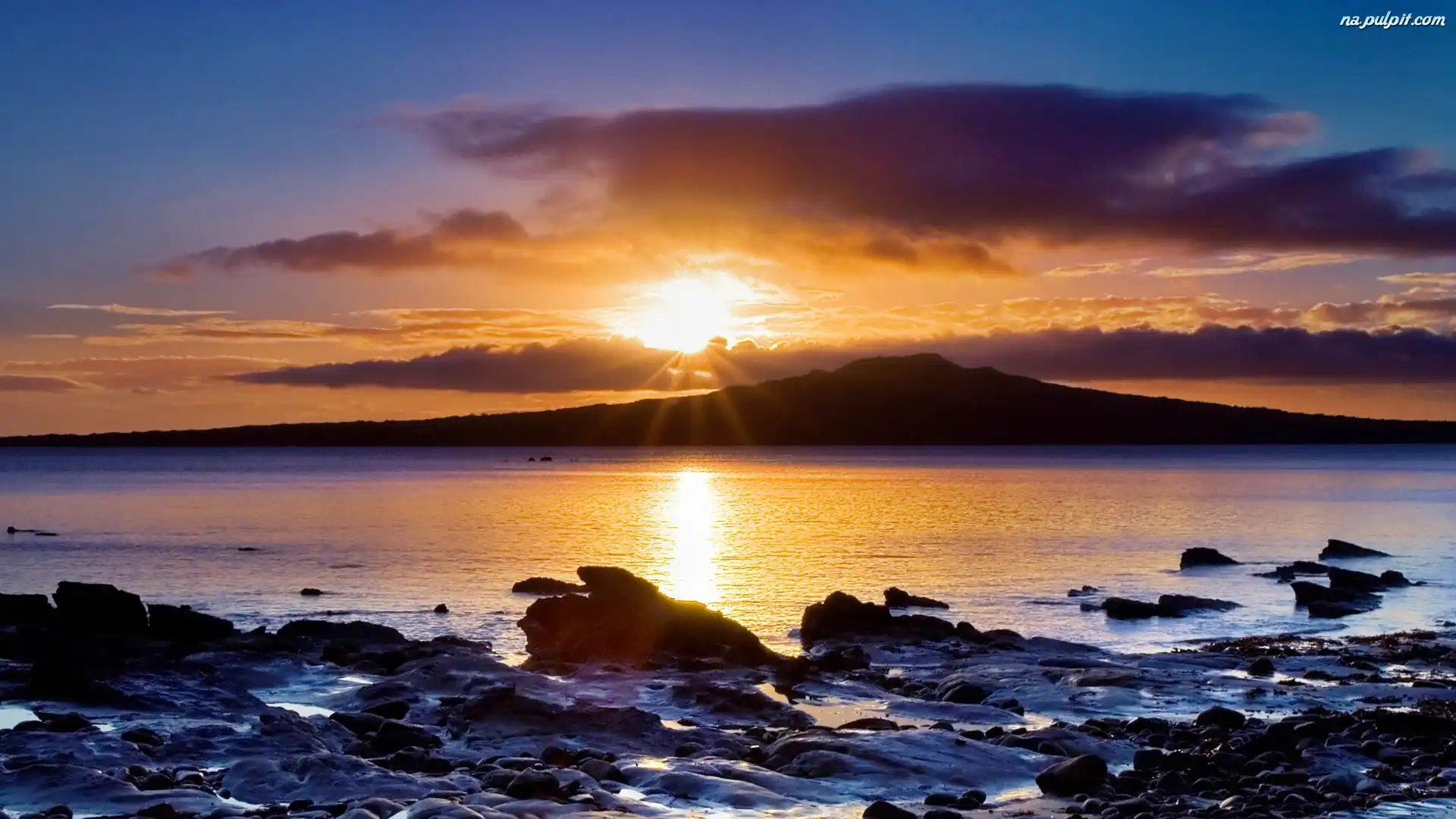 Odbicie, Słońca, Zachód, Jezioro, Kamienie Na Pulpit