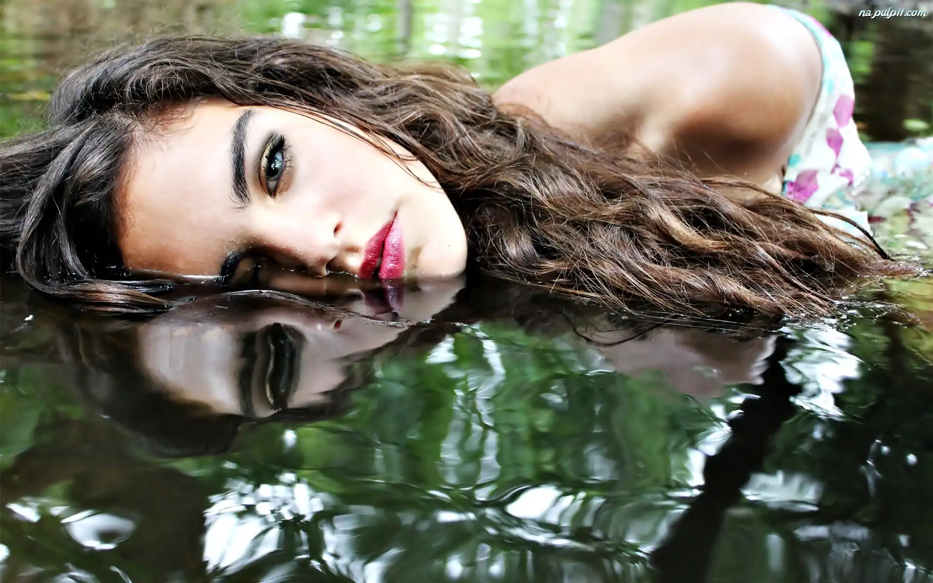 Odbicie, Twarz, Makijaż, Kobieta, Woda Na Pulpit