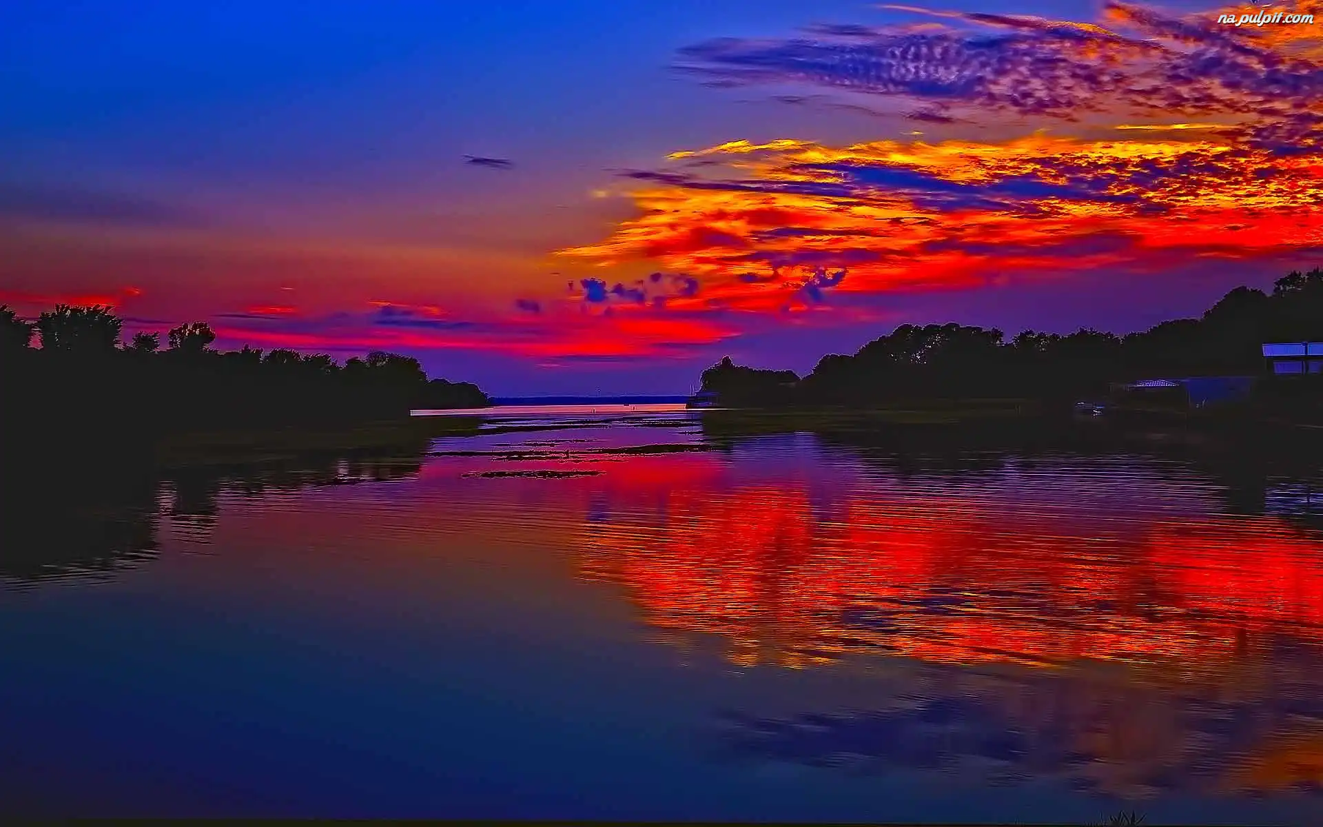Odbicie, Chmury, Kolorowe, Jezioro Na Pulpit