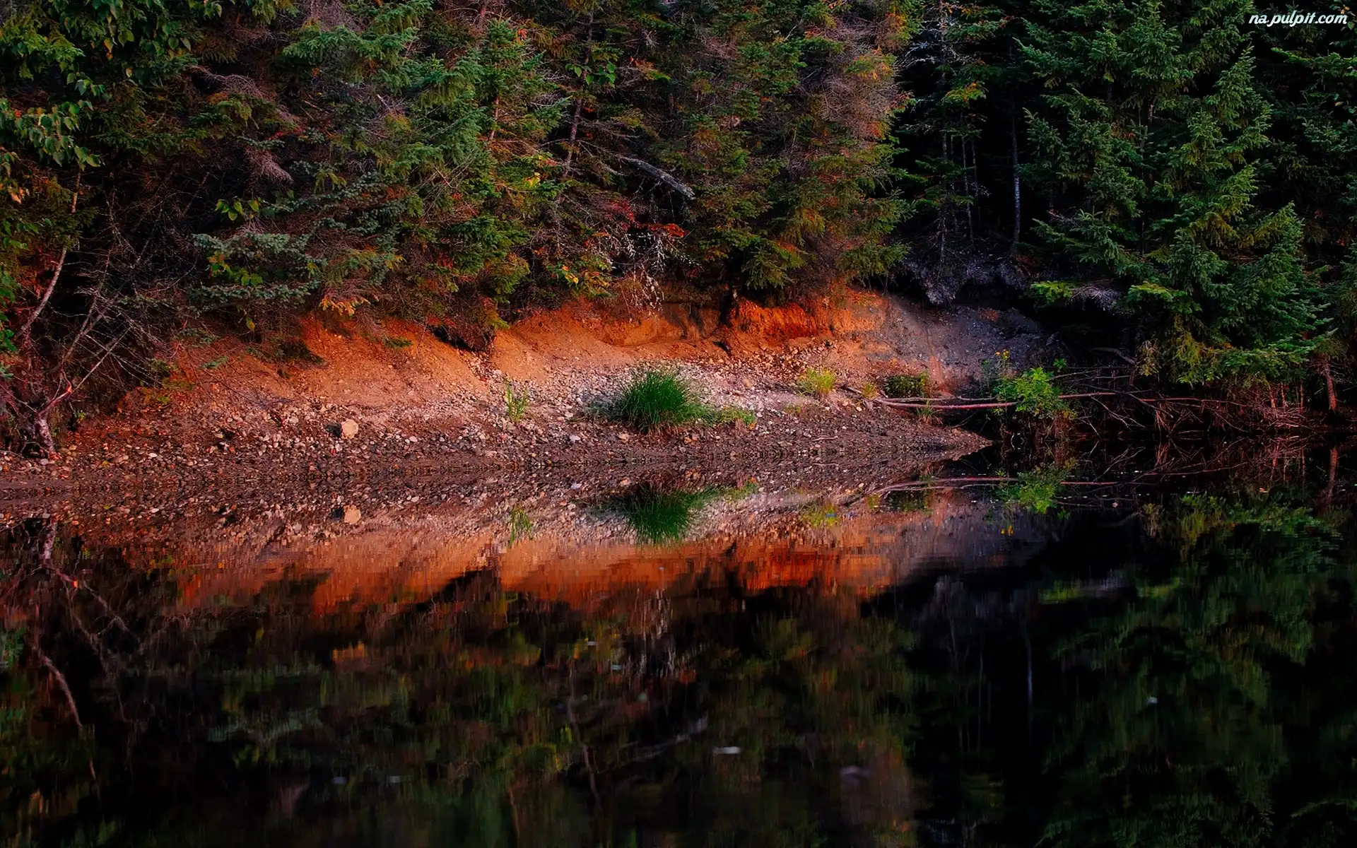 Odbicie, Drzewa, Las, Jezioro Na Pulpit