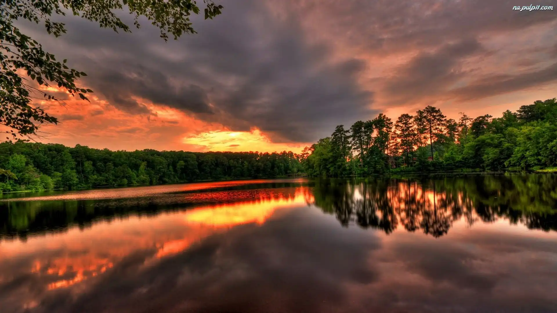Odbicie, Jezioro, Las, Chmury Na Pulpit