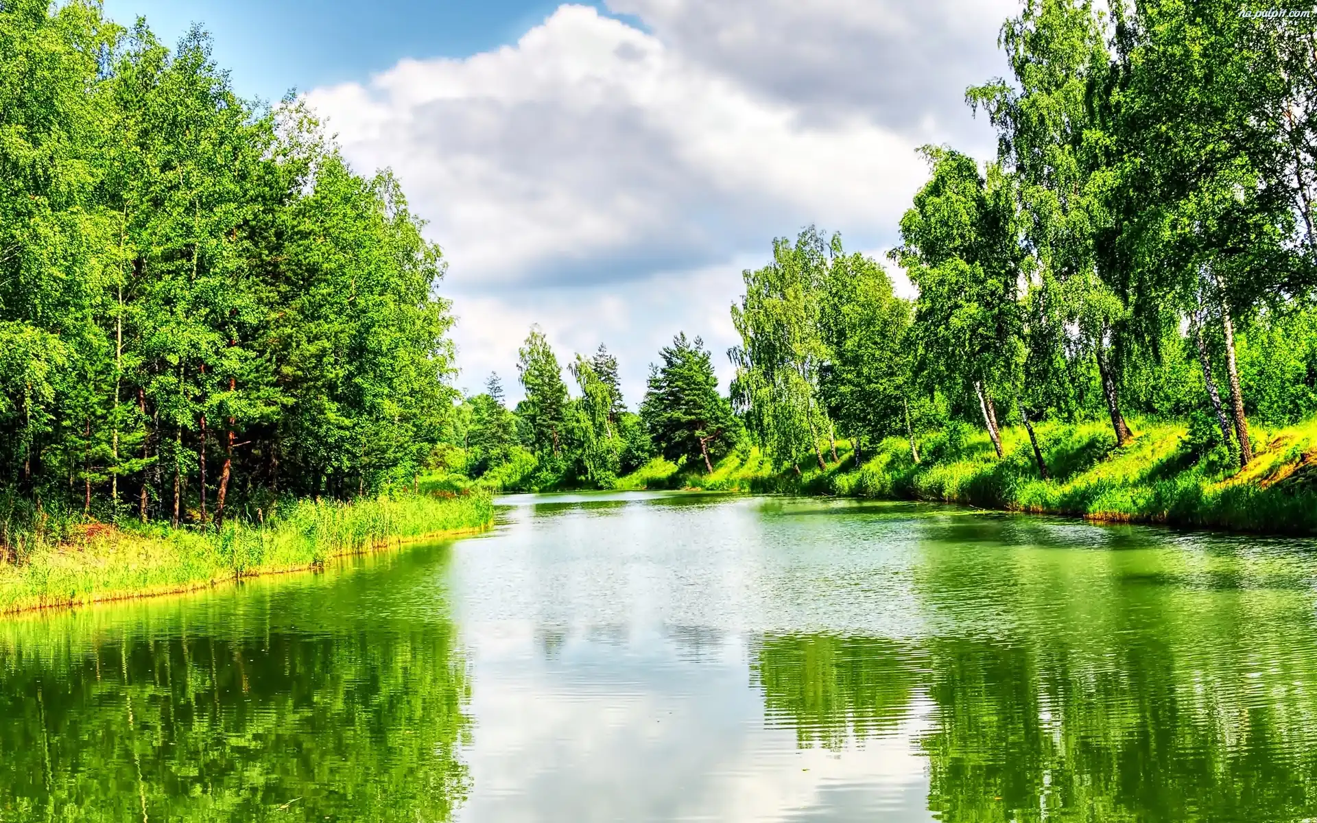 Odbicie, Rzeka, Las, Chmury Na Pulpit