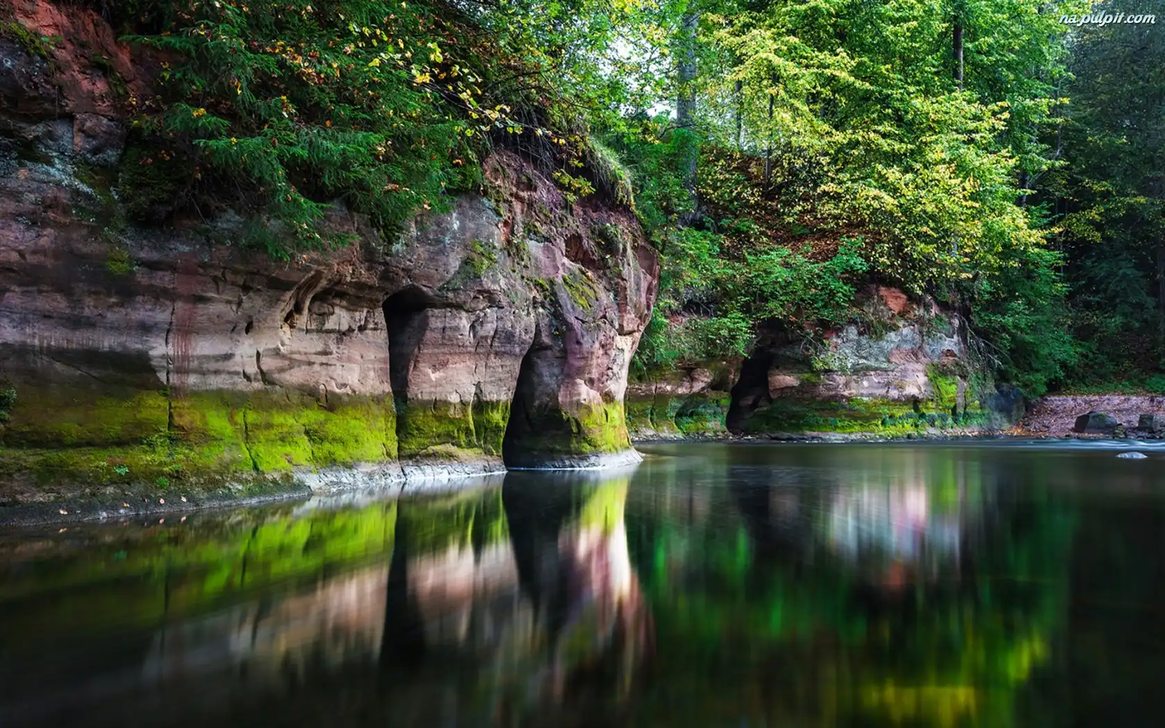 Odbicie, Skały, Las, Rzeka Na Pulpit
