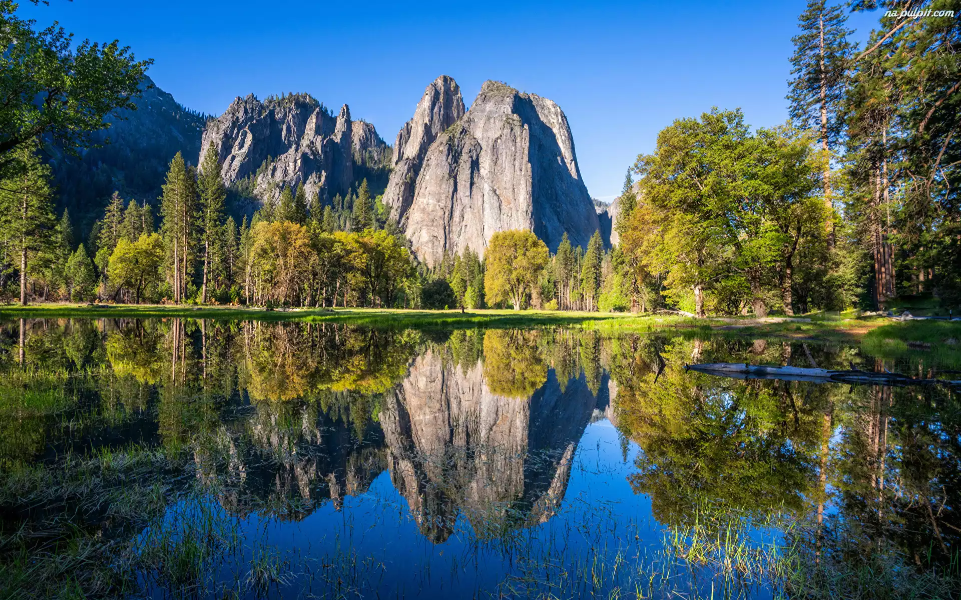 Rzeka, Park Narodowy Yosemite, Merced River, Stany Zjednoczone, Odbicie, Drzewa, Kalifornia, Góry Sierra Nevada Na Pulpit |