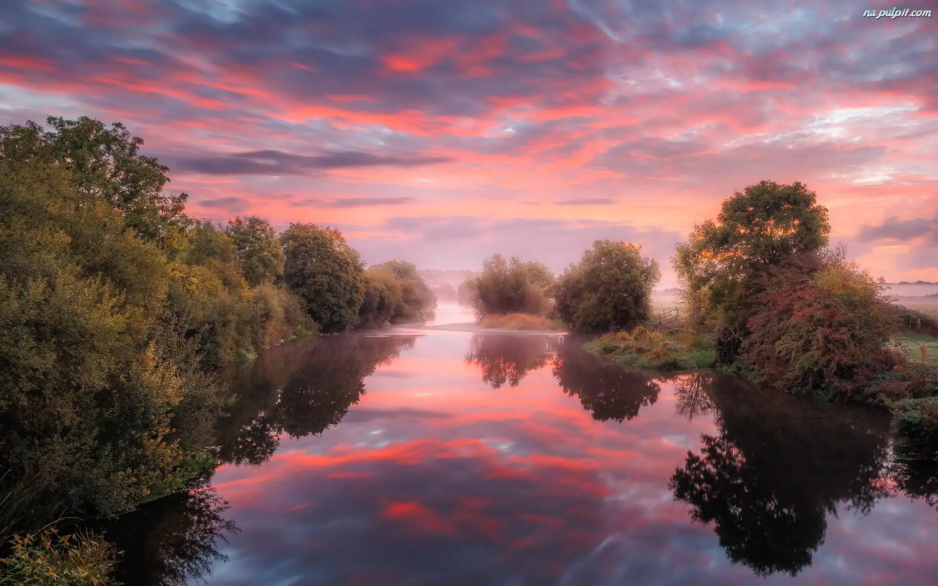 Anglia, Chmury, Mgła, Rzeka, River Stour, Drzewa, Odbicie Na Pulpit