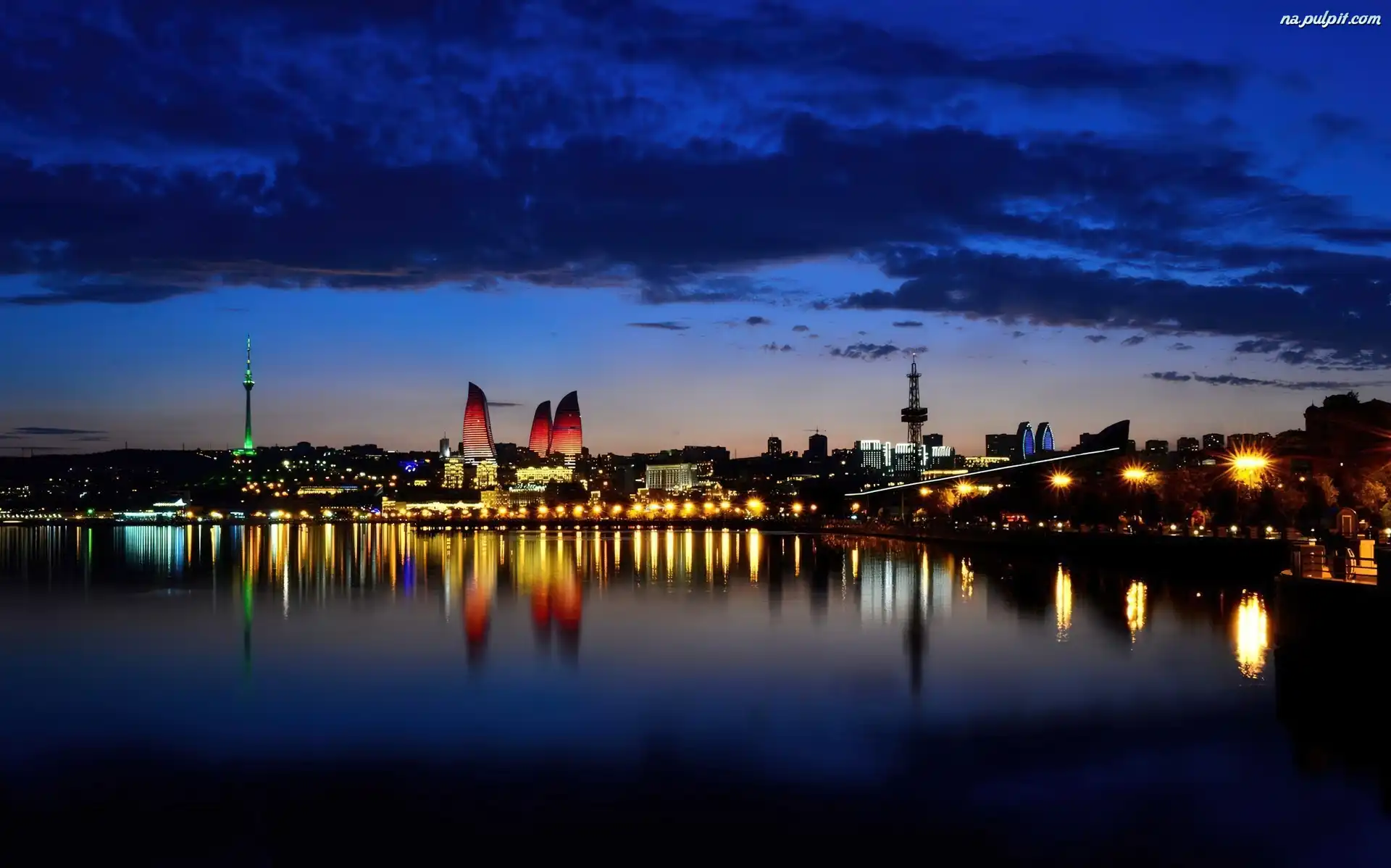 Odbicie, Noc, Baku, Miasto, Swiatła Na Pulpit