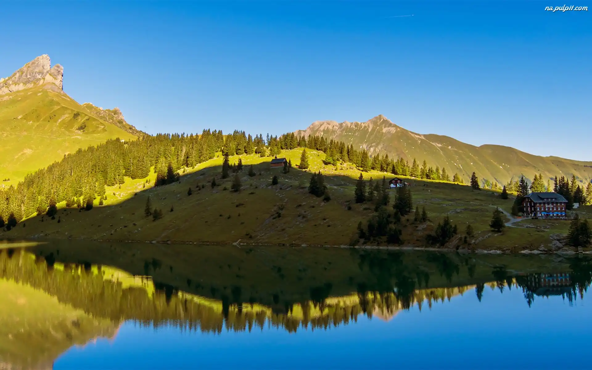 Odbicie, Gory, Niebo, Jezioro Na Pulpit
