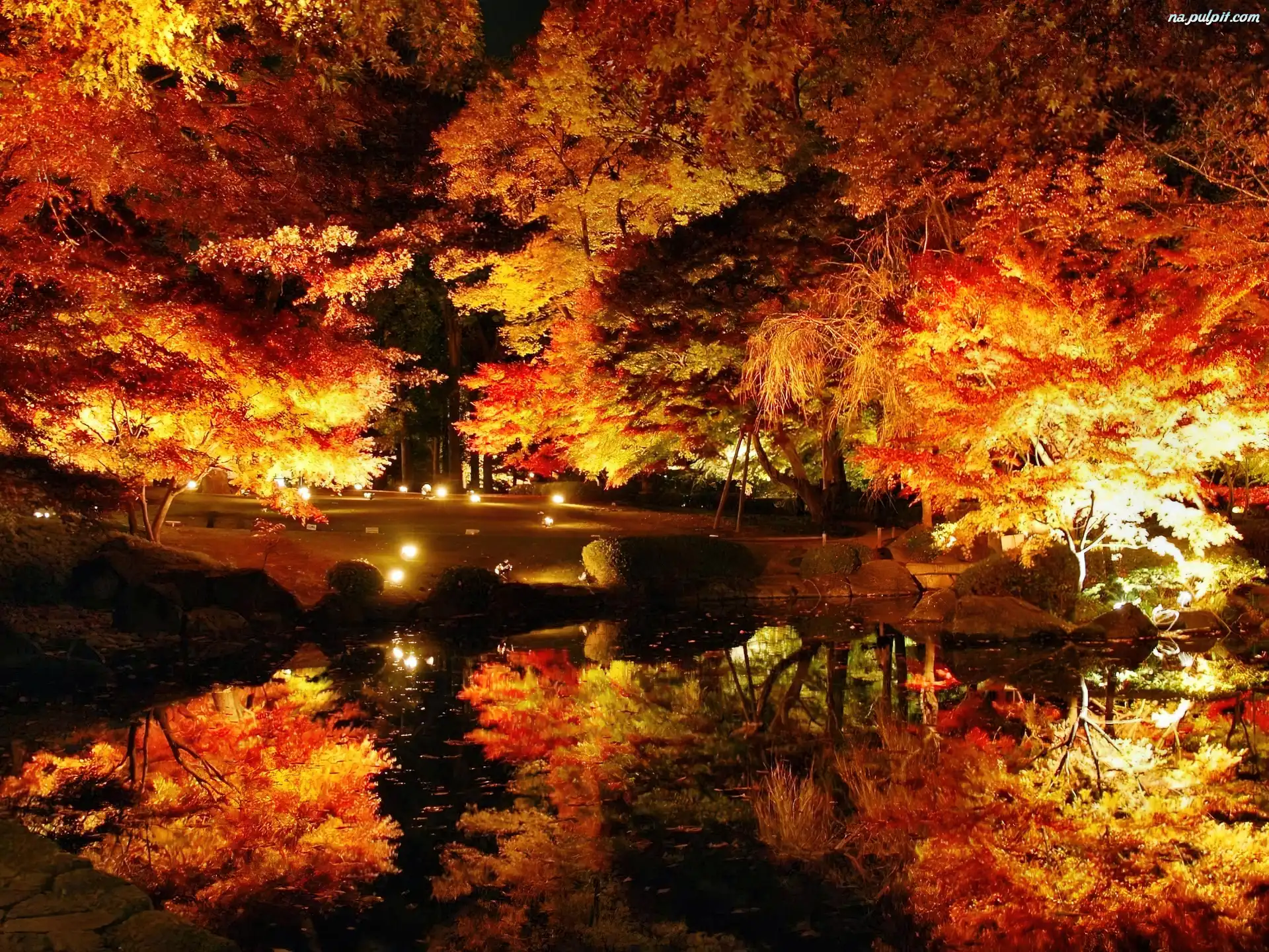 Odbicie, Park, Oświetlony, Staw Na Pulpit