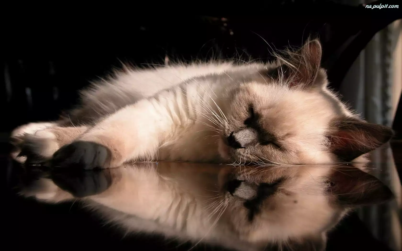 Odbicie, Kot, Śpiący, Łapka Na Pulpit