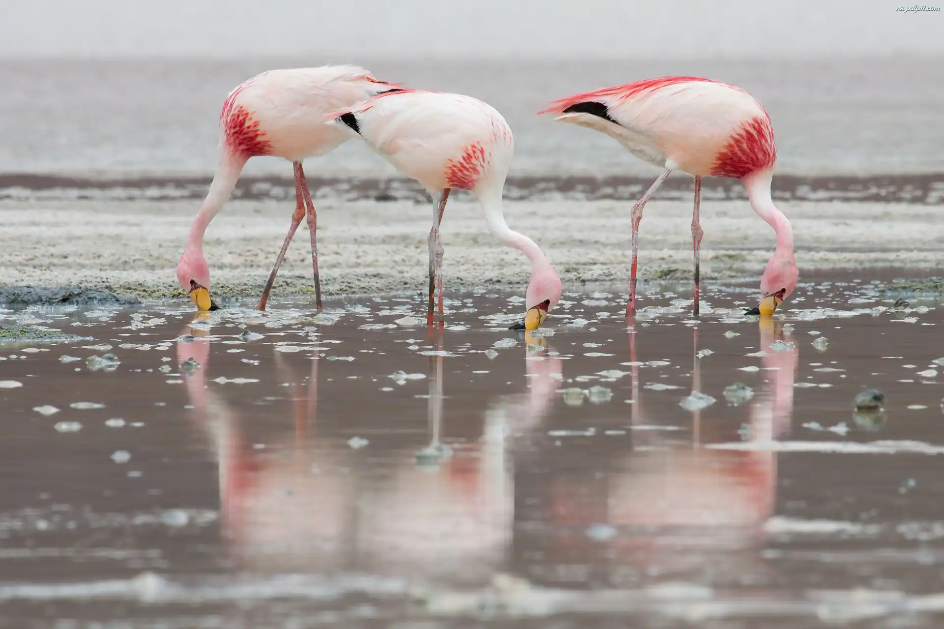 Odbicie, Flamingi Krótkodziobe, Pochylone, Woda Na Pulpit
