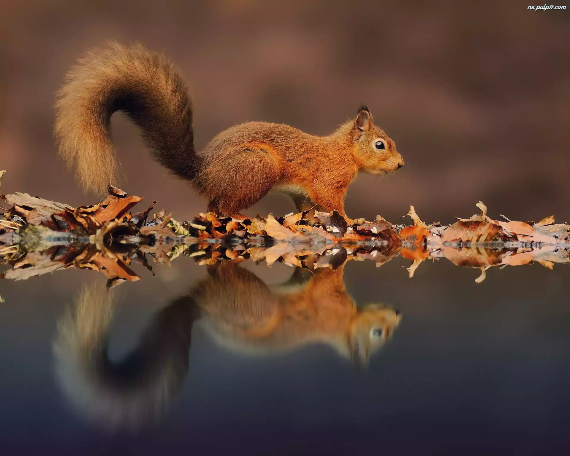 Odbicie, Wiewiórka, Ruda, Liście Na Pulpit