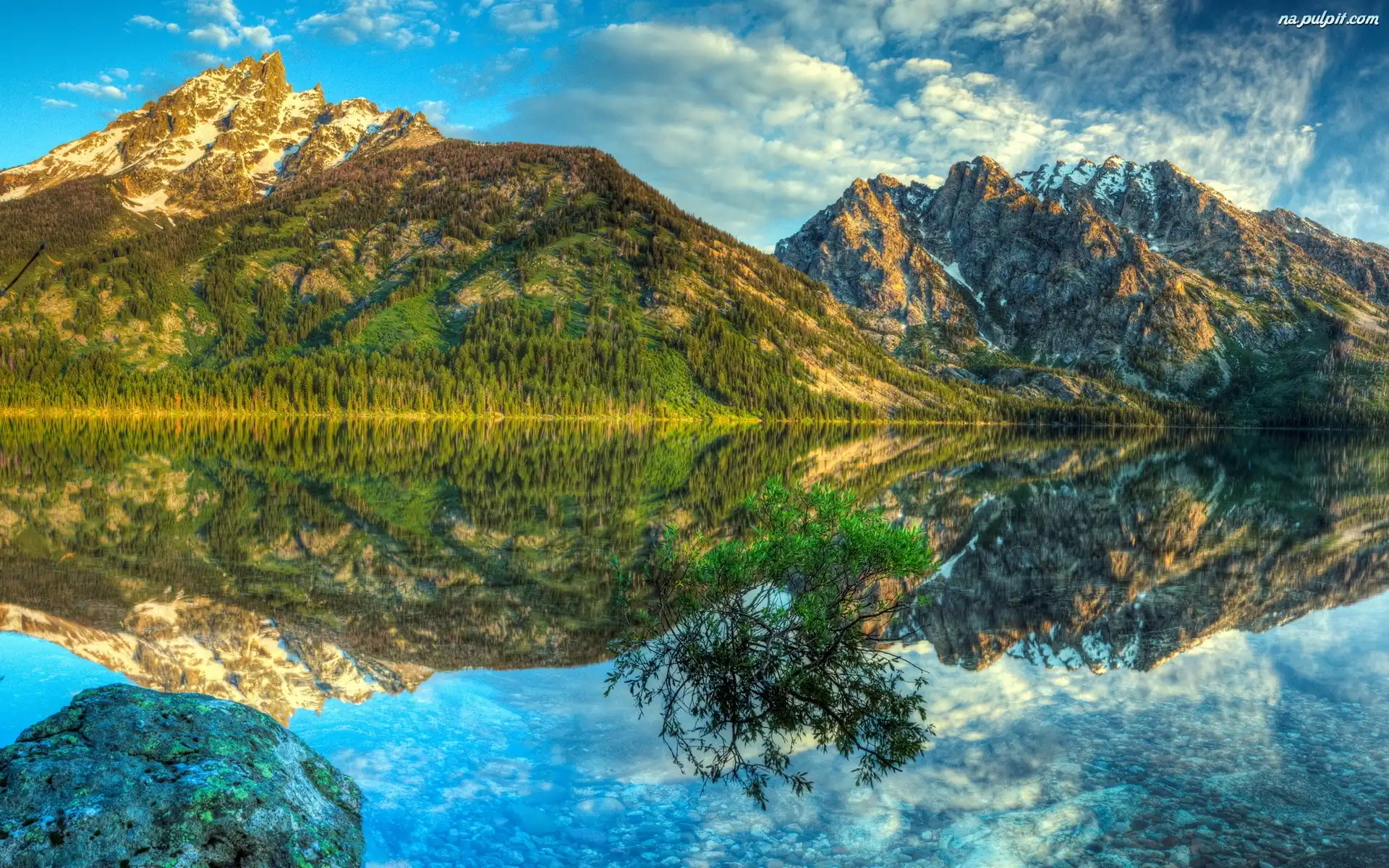 Odbicie , Jezioro, Skały, Drzewa Na Pulpit