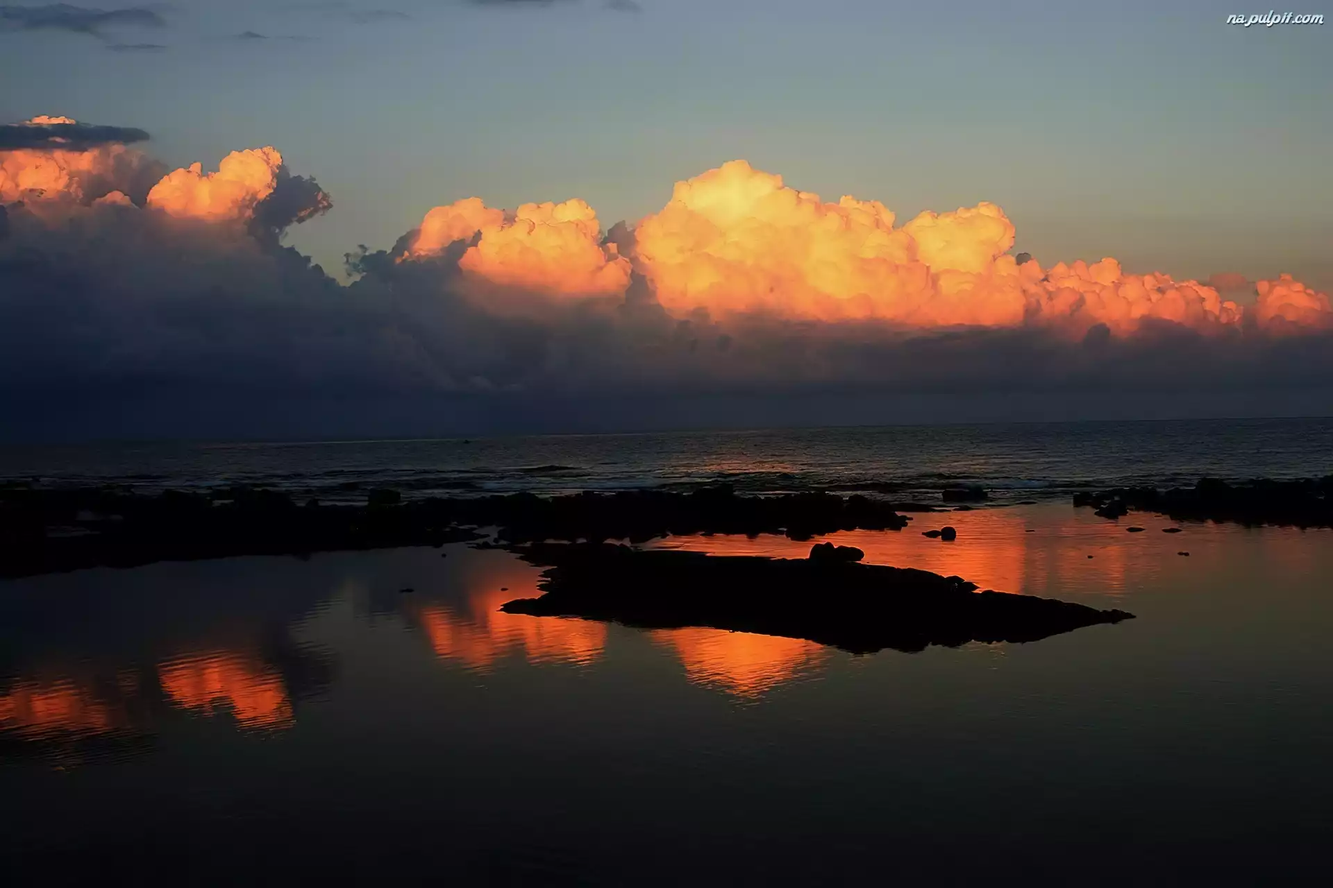 Odbicie, Woda, Zachód Słońca, Chmury Na Pulpit