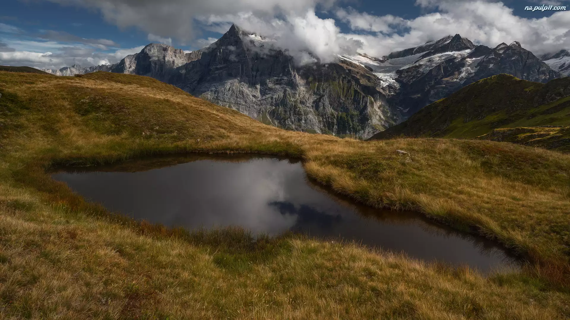 Staw, Góry, Chmury, Odbicie Na Pulpit
