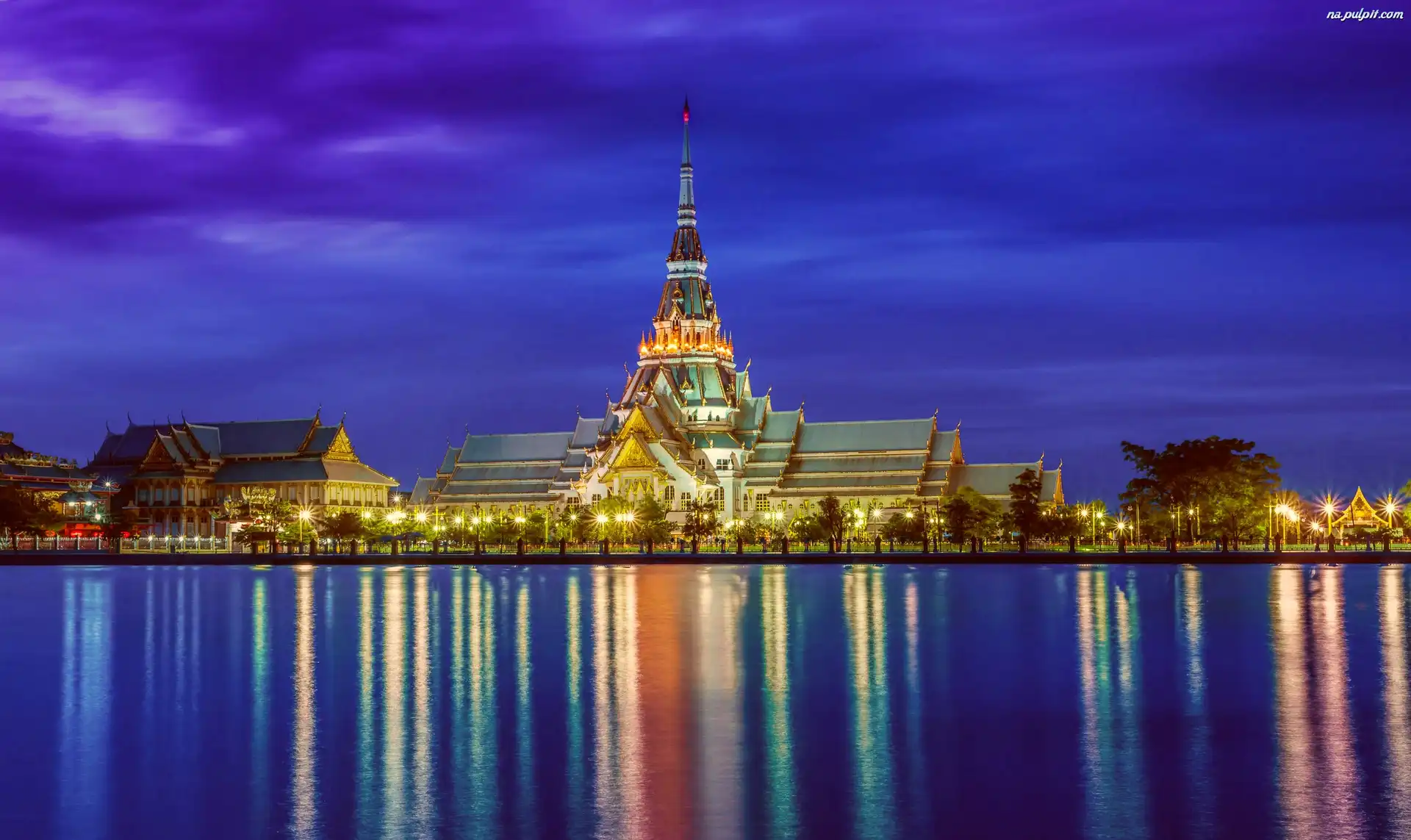 Odbicie, Świątynia, Buddyjska, Tajlandia, Światła Na Pulpit