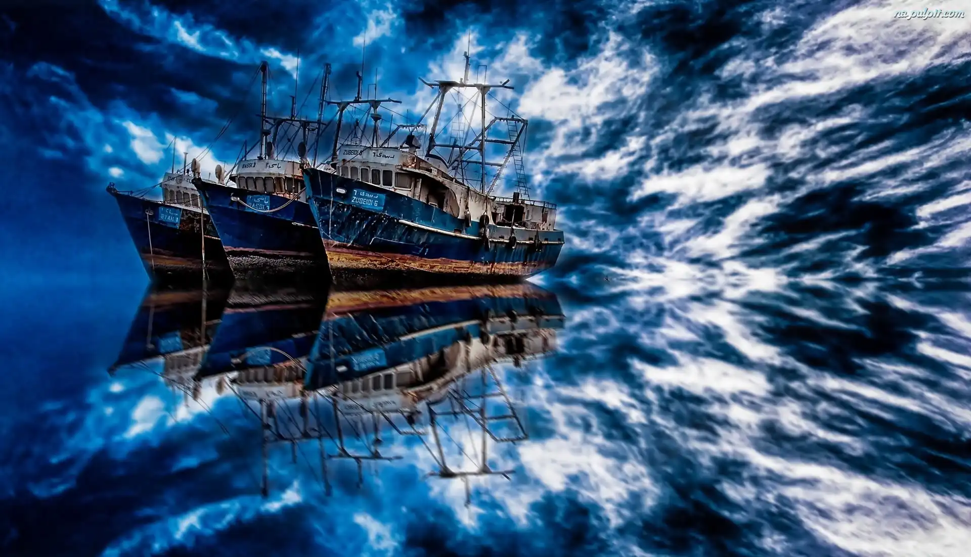 Odbicie, Morze, Statki, Trzy, Niebo Na Pulpit