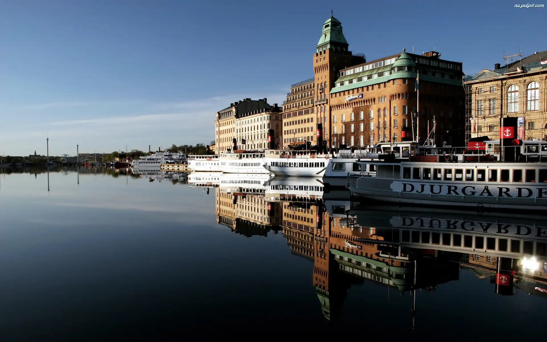 Odbicie, Na Nabrzeżu, Gmachy, Świt, Statki Na Pulpit