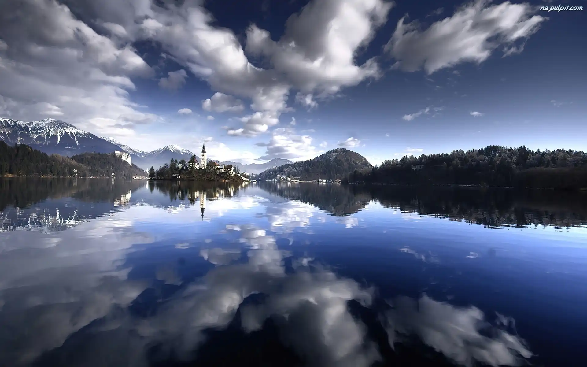 Odbicie, Góry, Woda, Miasteczko Na Pulpit