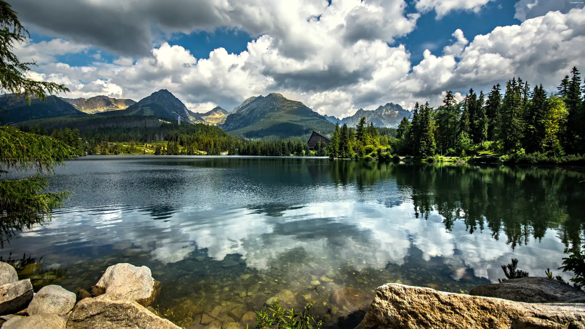 Kamienie, Góry, Jezioro Ławka, Jesień, Jezioro Polska, Morskie, Oko Jezioro, Góry, Chmurki Plaża, Fale, Góry, Morze Góra Góra Góra, Jeziora Góra Góry, Krzewy palmy, Chmura, Góry, Niebo Góry, śnieg domki, Góry, dwa drzewa skały, Niebo