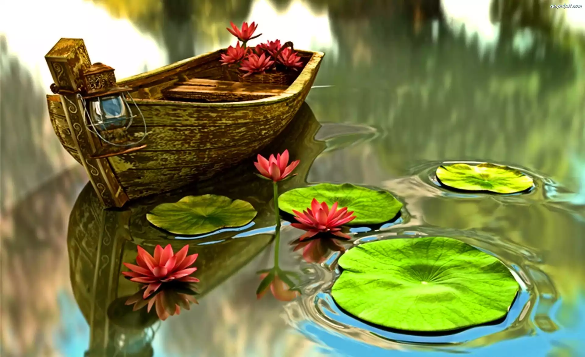 Wodne, Łódka, Lilie