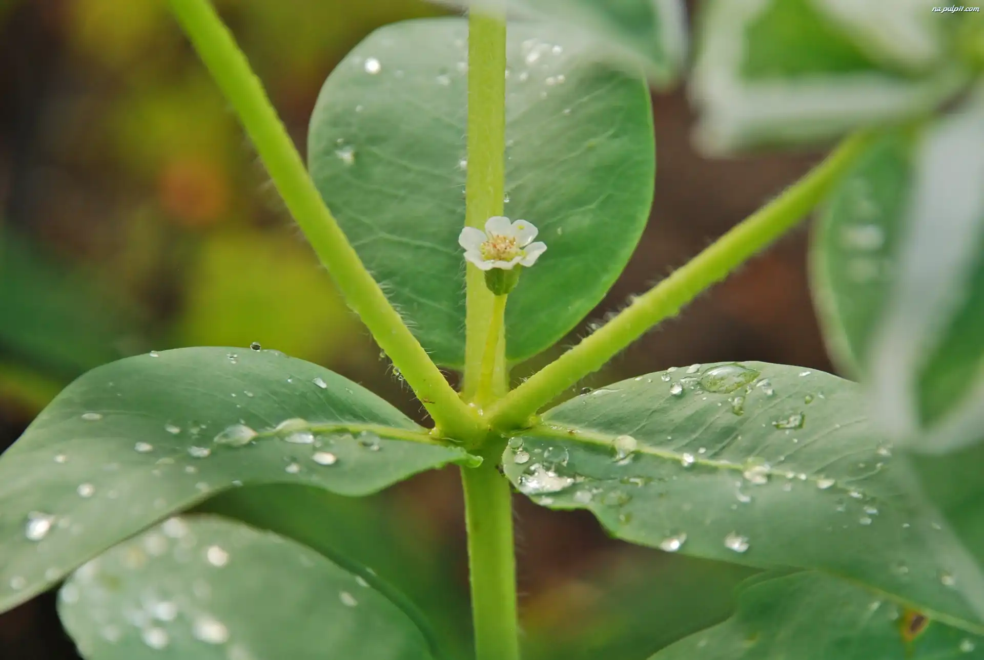 Łodyga, Biały, Kwiatek, Krople, Liście, Deszczu Na Pulpit