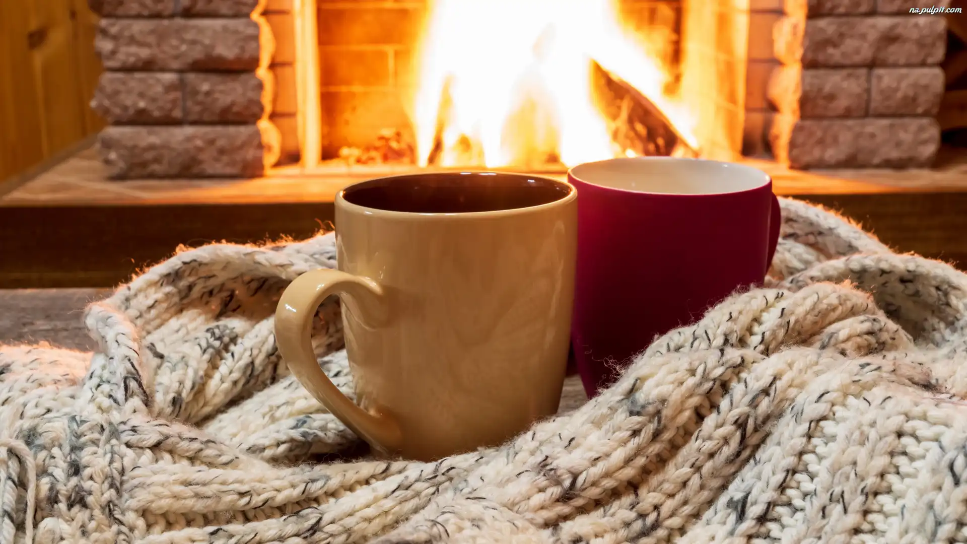 Ogień, Szal, Kubki, Dwa, Kominek Na Pulpit