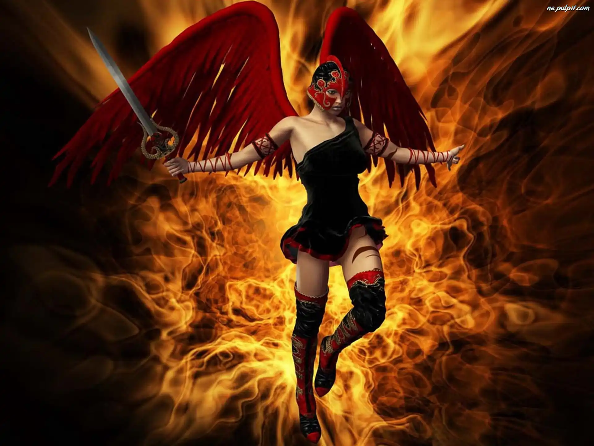 Ogień, Anioł, Kobieta, Miecz