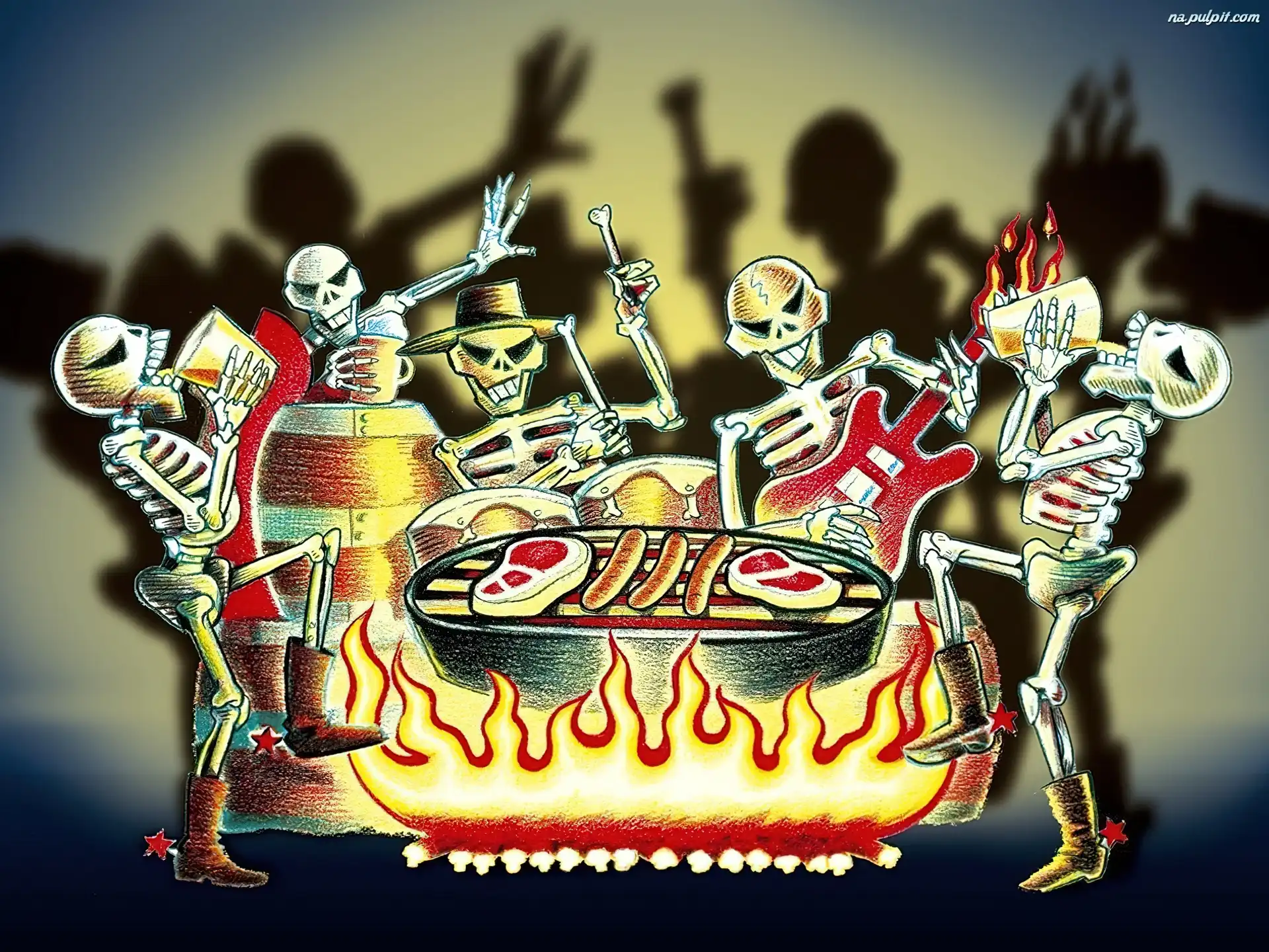 szkielety, ogień, Die Toten Hosen, trupie czaszki