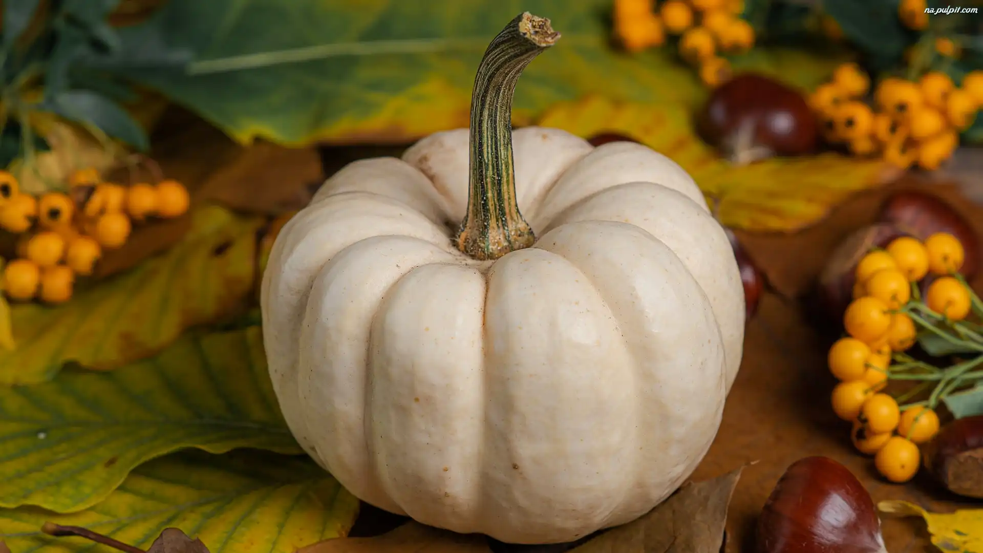 Ognik szkarłatny, Dynia, Biała, Liście Na Pulpit