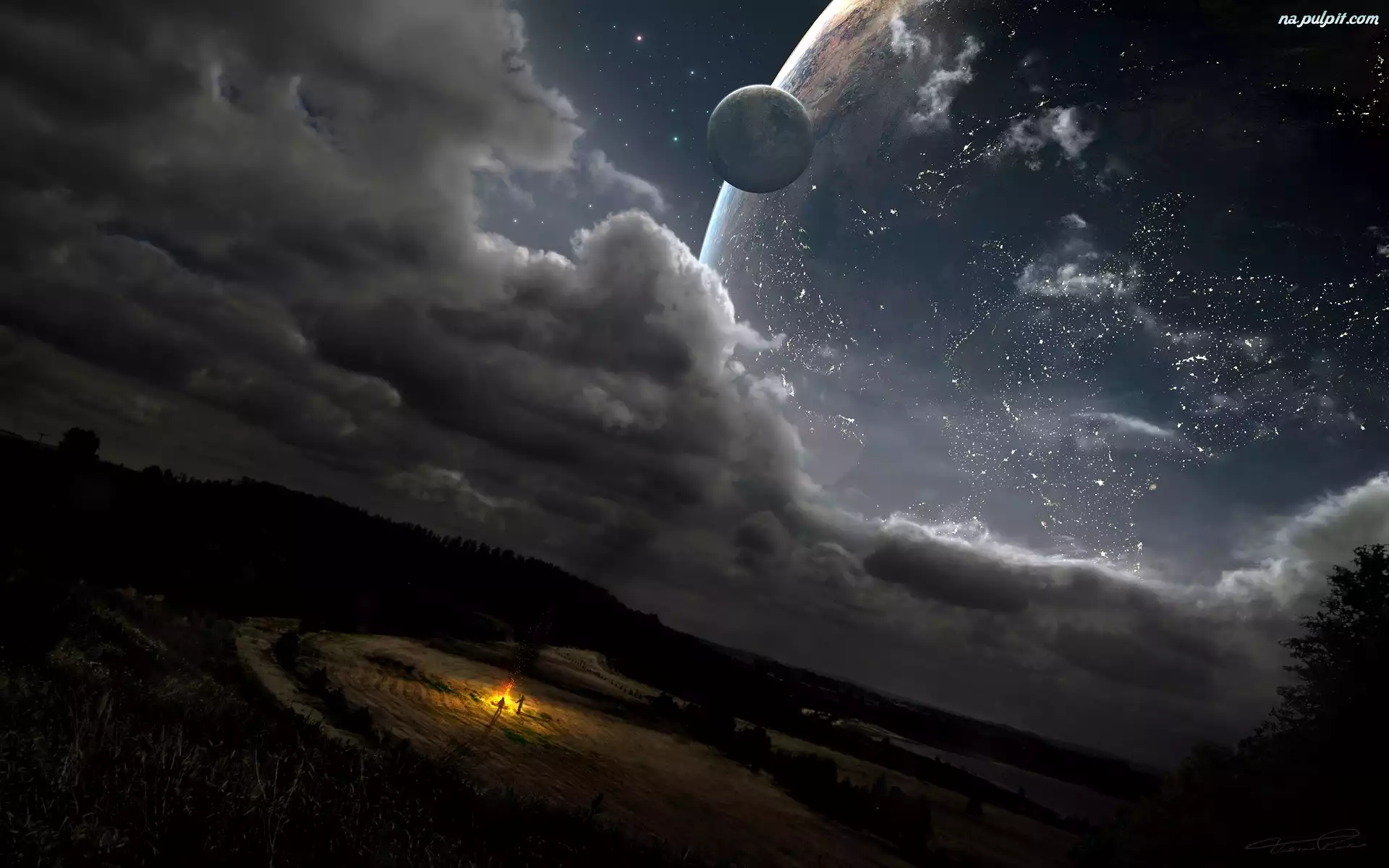 Ognisko, Planety, Chmury, Ludzie Na Pulpit