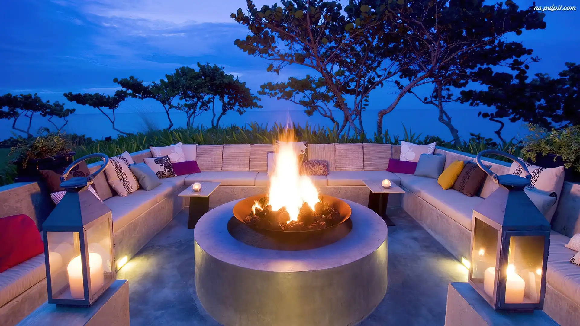Ognisko, Drzewa, Morze, Taras