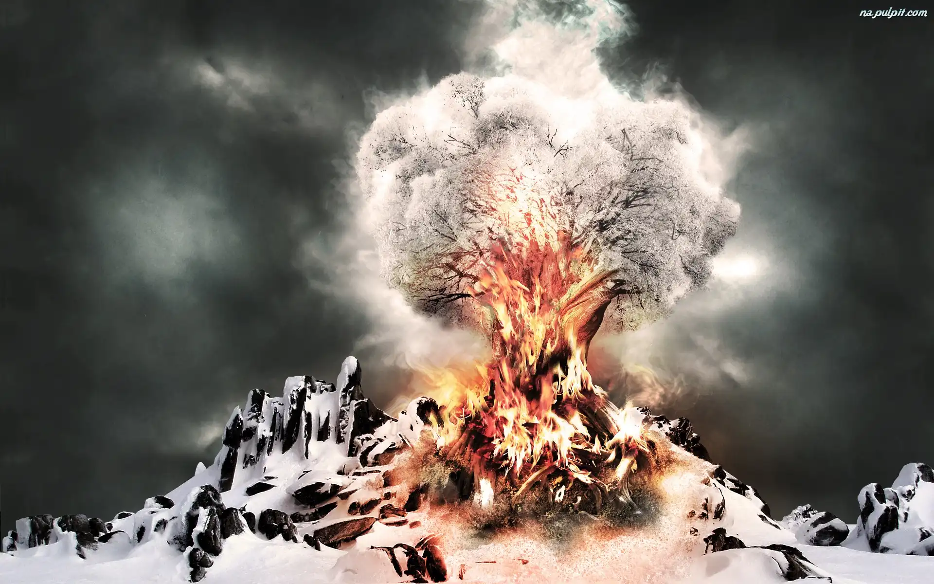 Śnieg, Drzewo, Ogniste, Skały Na Pulpit
