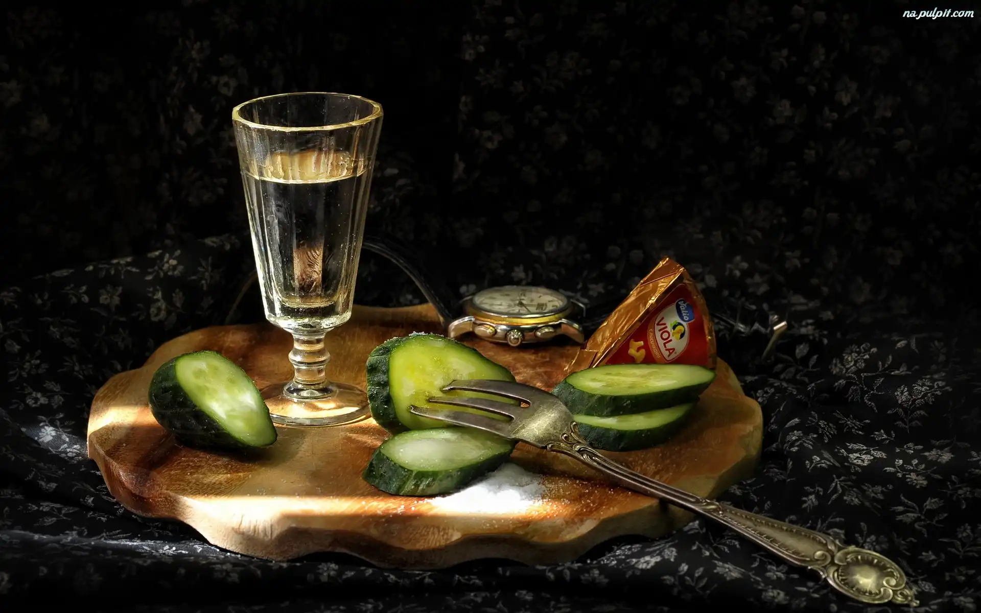 Ogórki, Zegarek, Widelec, Plasterki, Kieliszek, Ser Na Pulpit