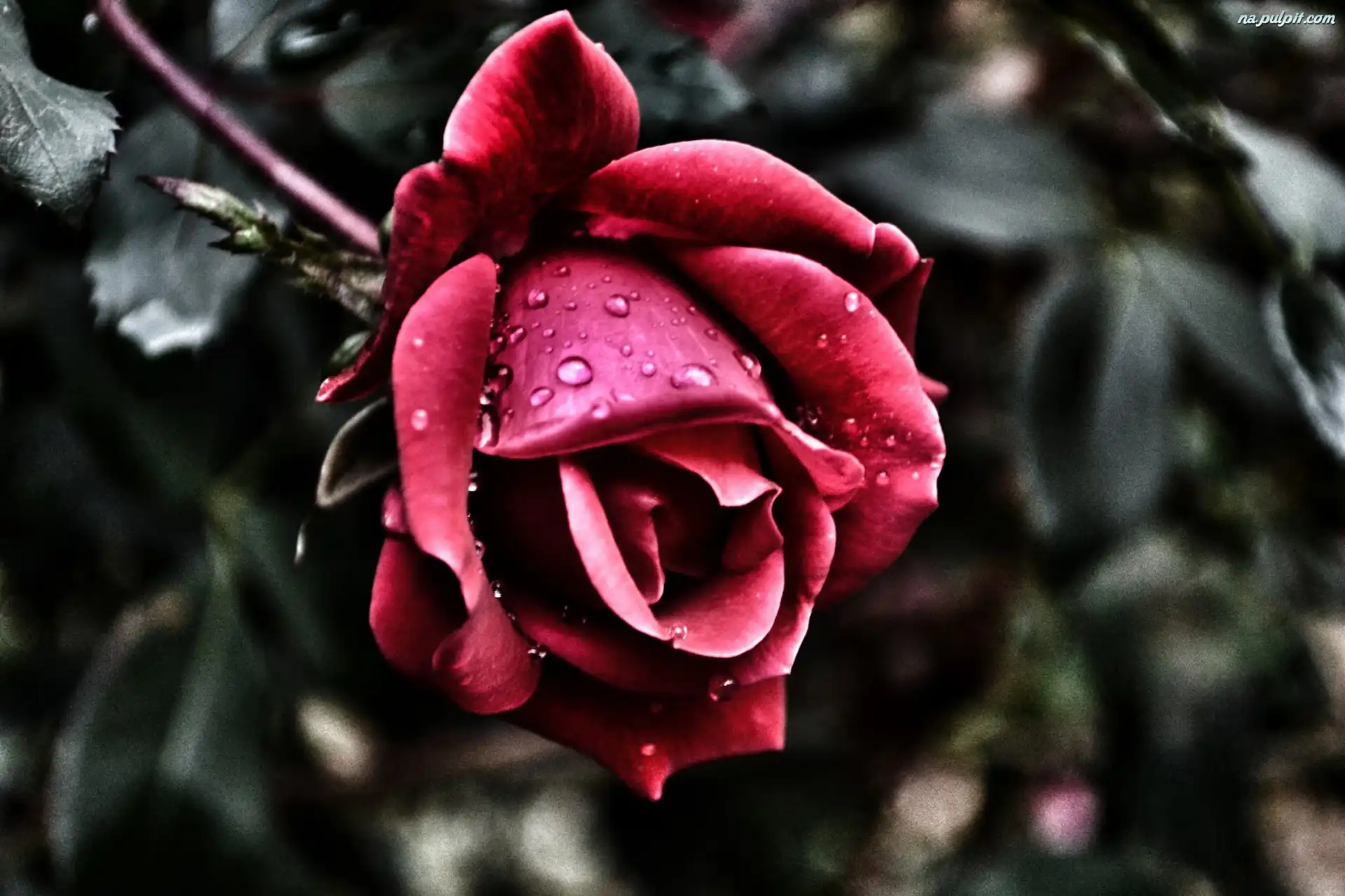 Ogród, Róża, Bordowa, Krople Na Pulpit
