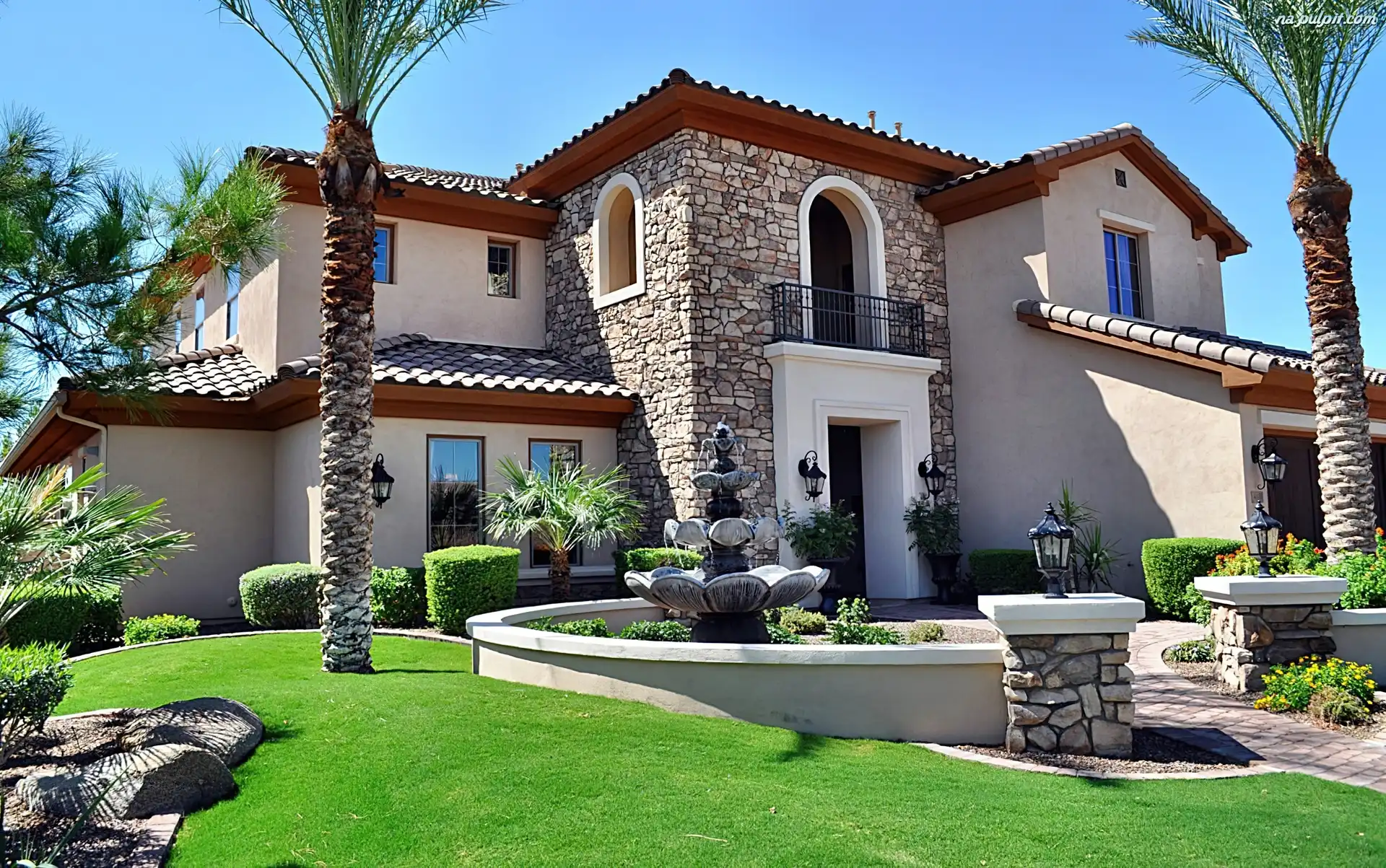 Ogród, Willa, Dom, Fontanna