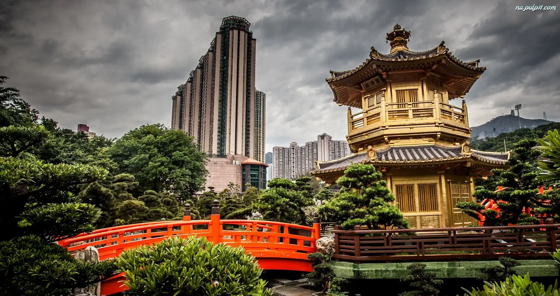 Ogród, Mostek, Pałacyk, Drapacze Chmur Na Pulpit