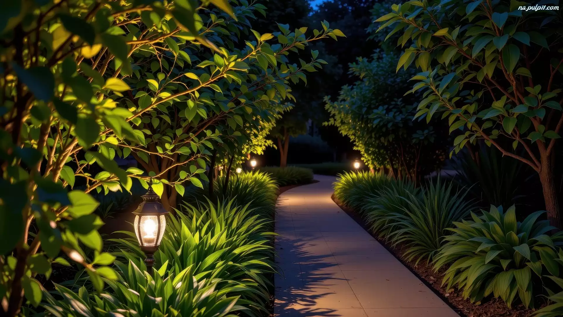 Latarnie, Ogród, Drzewa, Chodnik, Rośliny Na Pulpit